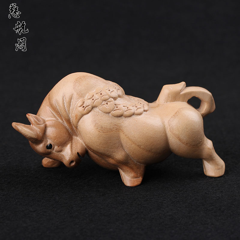 📚 桃木牛摆件精致原色木雕无漆金钱华尔街牛桌面客厅玄关扭转乾坤