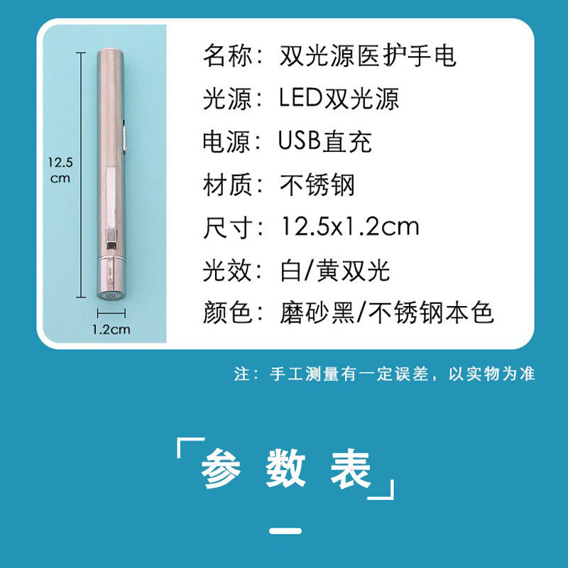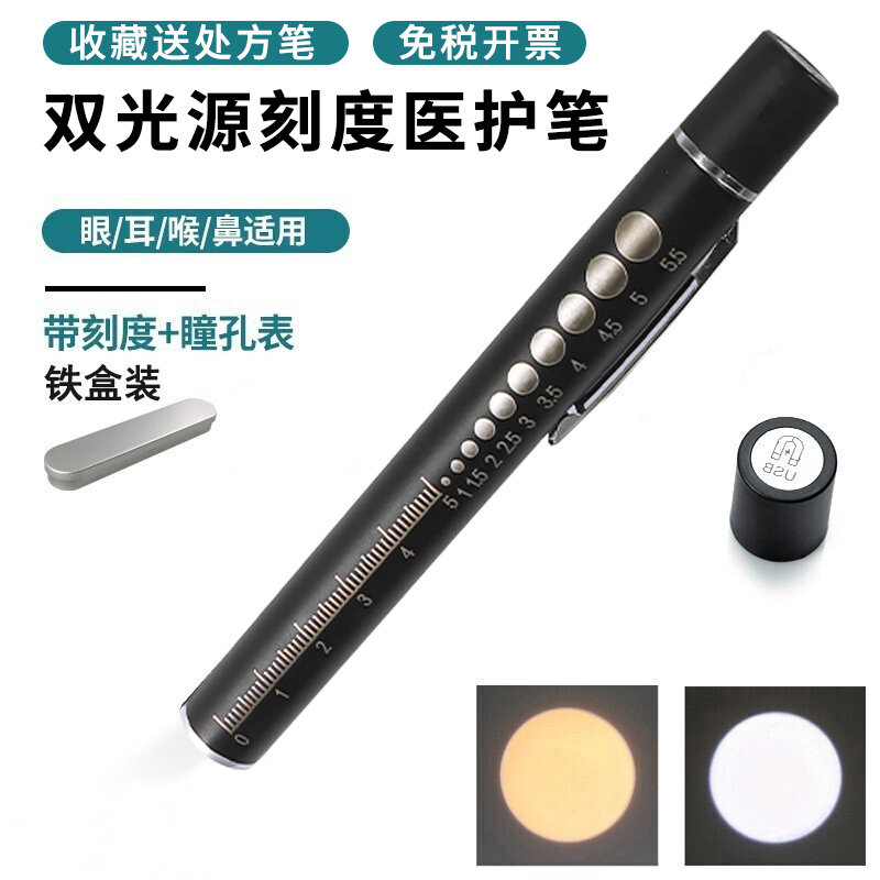 📚 医护瞳孔笔口腔检查灯护士白黄光可充电小手电筒多功能双光源携带