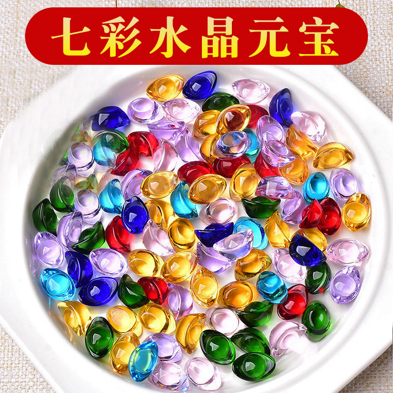 📚 彩色水晶琉璃小金元宝招财开业礼品七宝石曼扎供佛聚宝盆摆件装饰