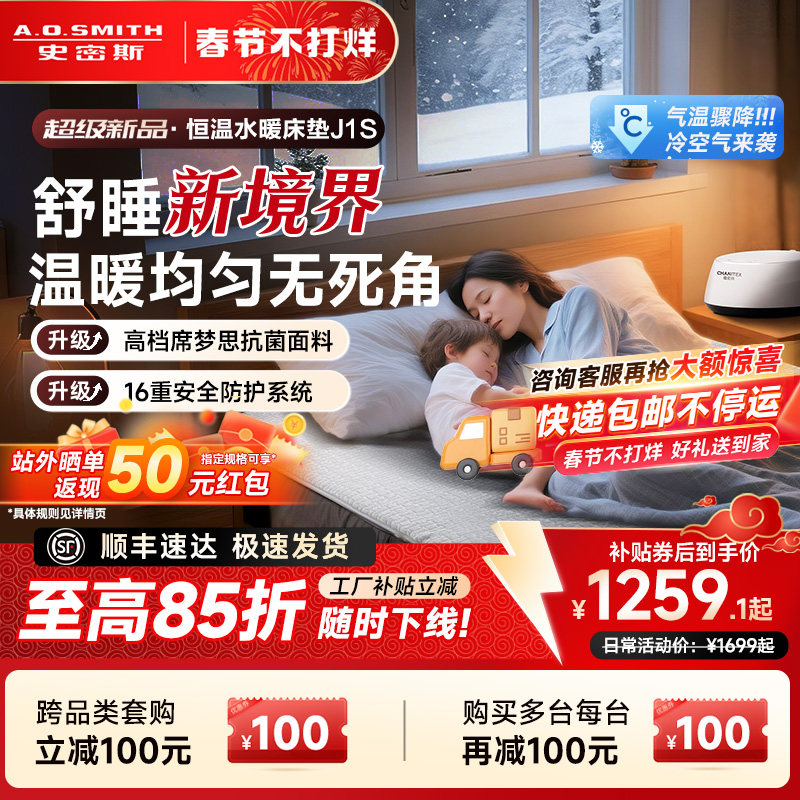 📚 【重磅新品】AO史密斯佳尼特双人恒温水暖床垫水暖毯电热毯J1S/J1