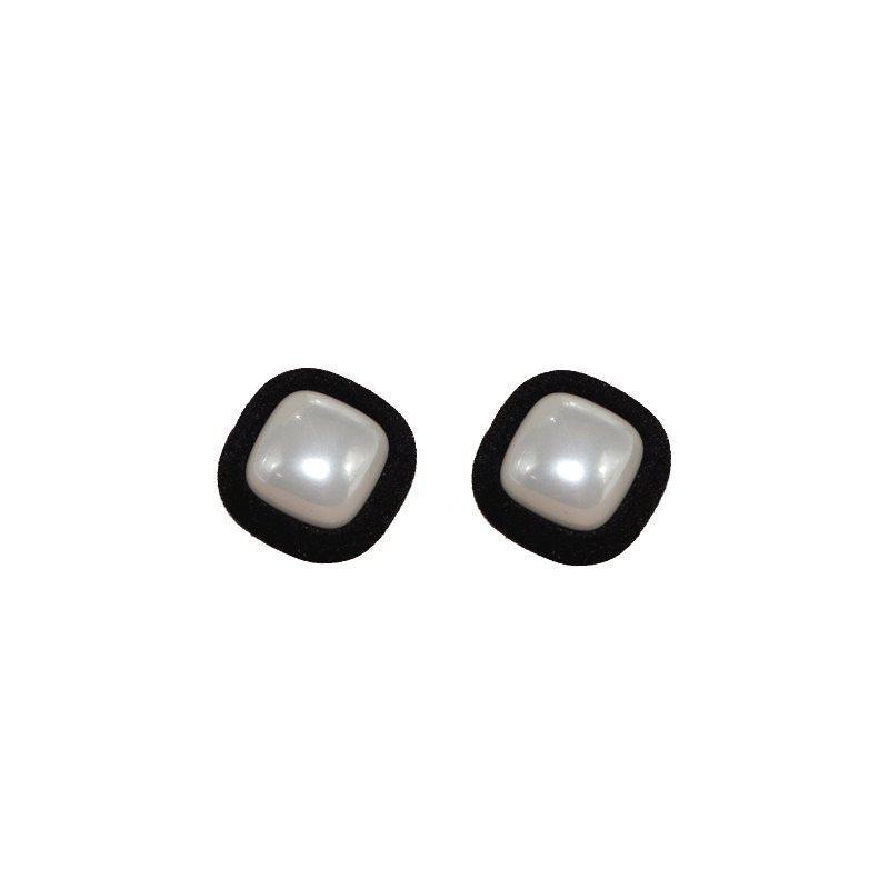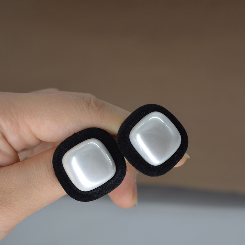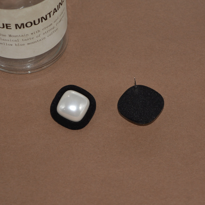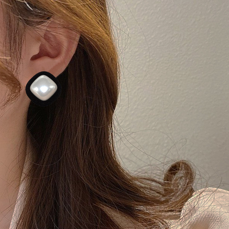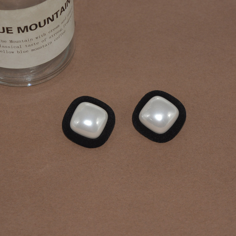 📚 秋冬复古丝绒撞色气质耳环女港风几何方形耳钉百搭大珍珠耳夹耳饰