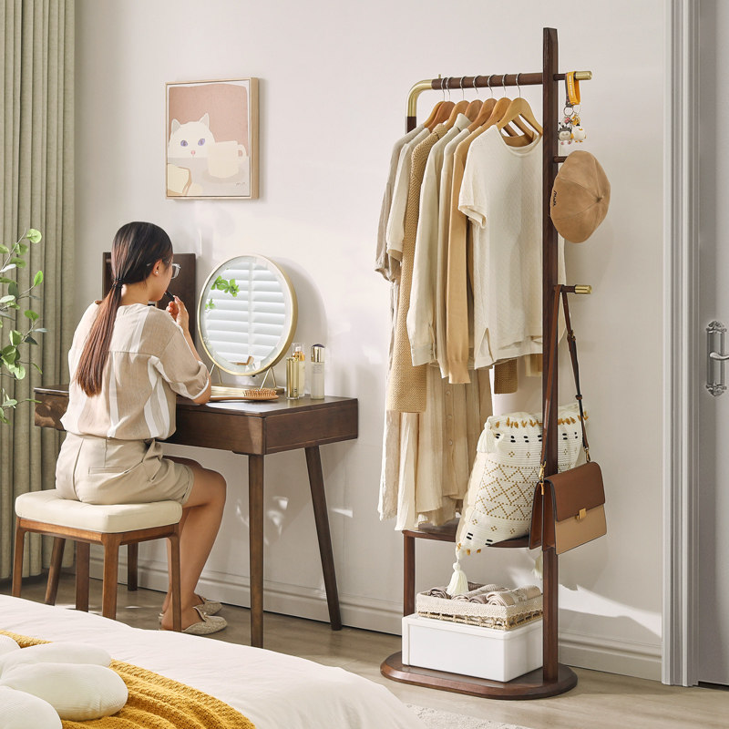 📚 实木衣架卧室落地家用挂衣架现代简约晒放衣服架子室内简易衣帽架