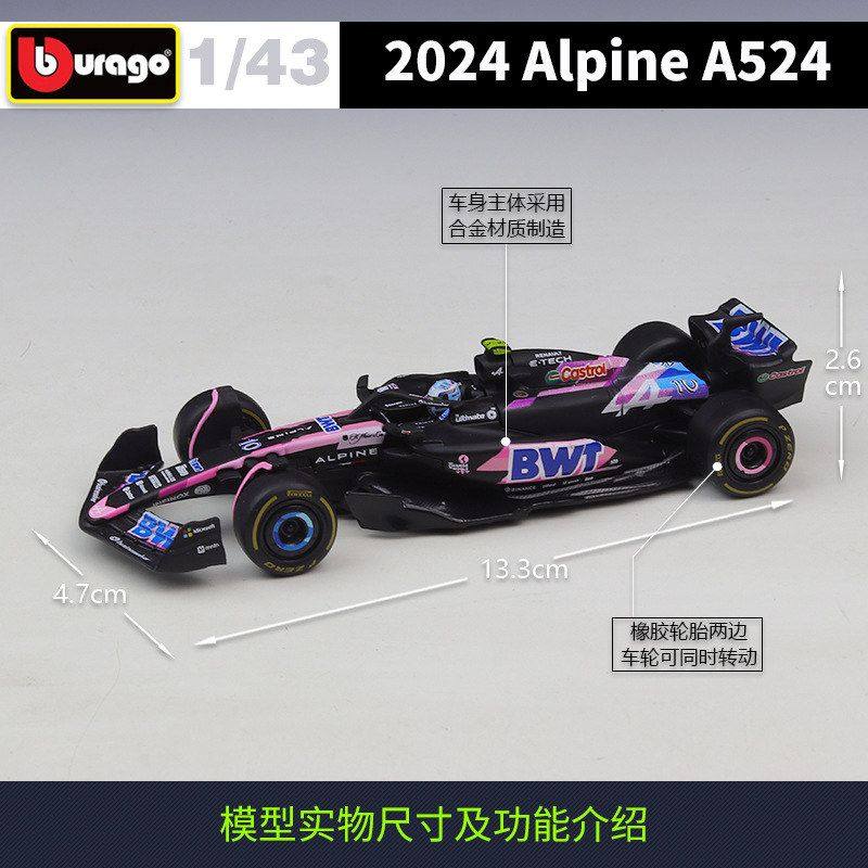 📚 比美高1:43 F1 2024 Alpine A524 车队 赛车仿真合金汽车成品模型