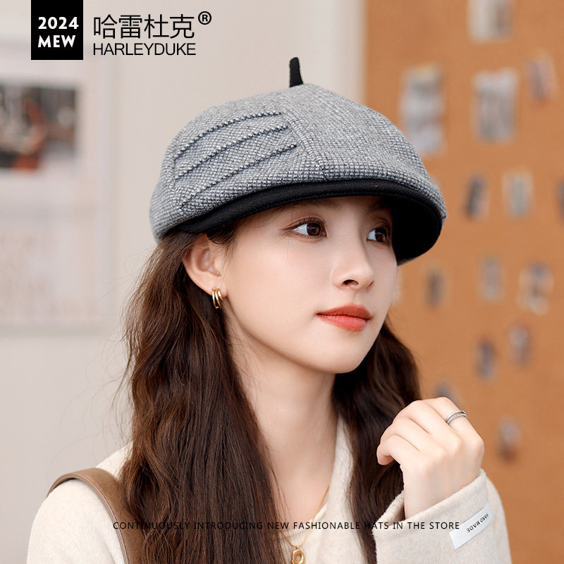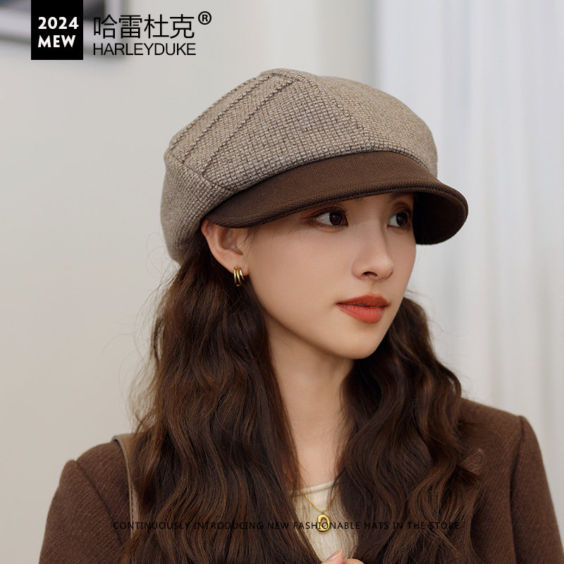 📚 贝雷帽子女秋冬季英伦复古韩版百搭帽子女春秋八角帽小头围画家帽