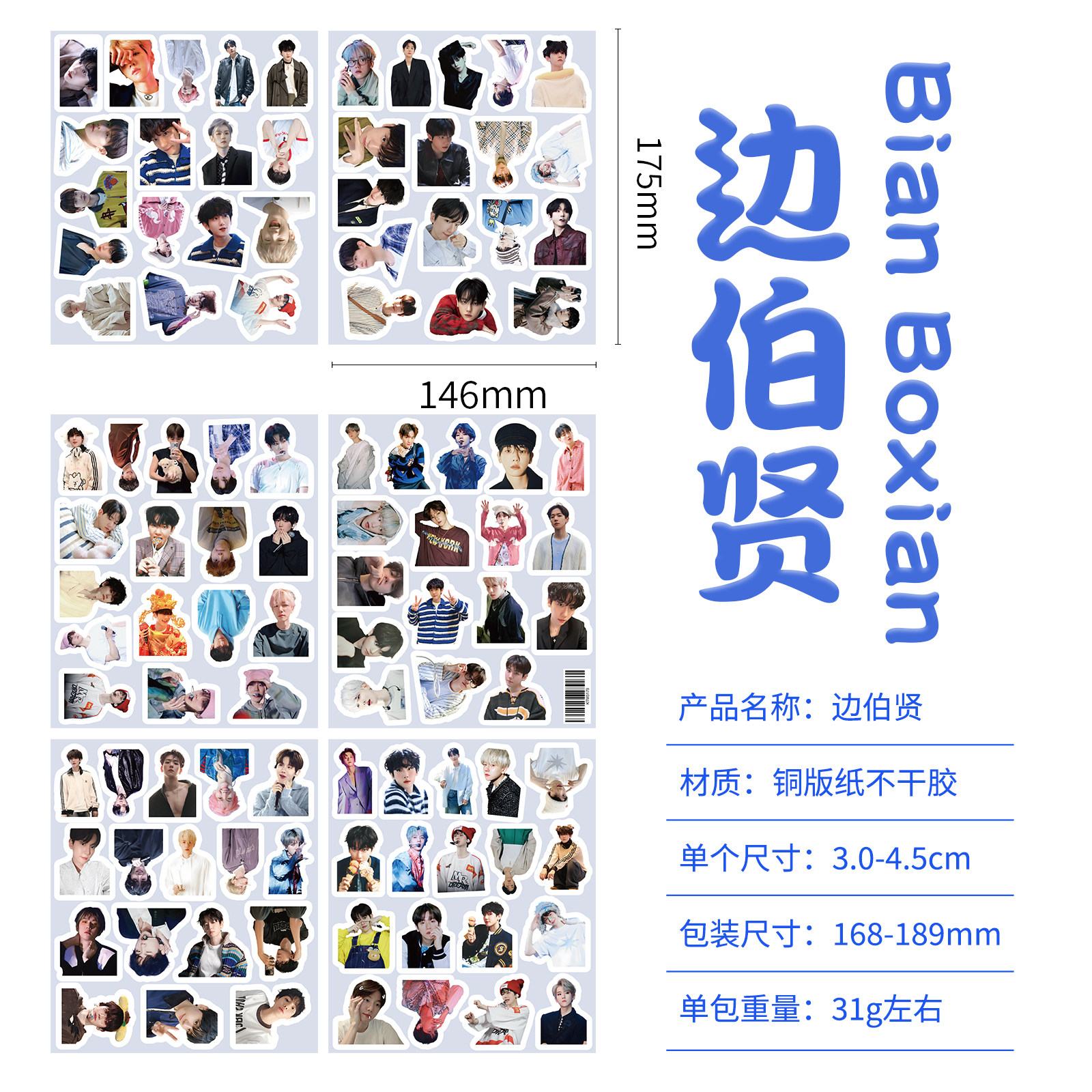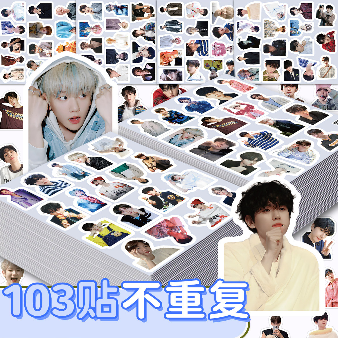 📚 206张边伯贤明星周边应援贴纸自粘手账本素材手机壳标签立体贴画