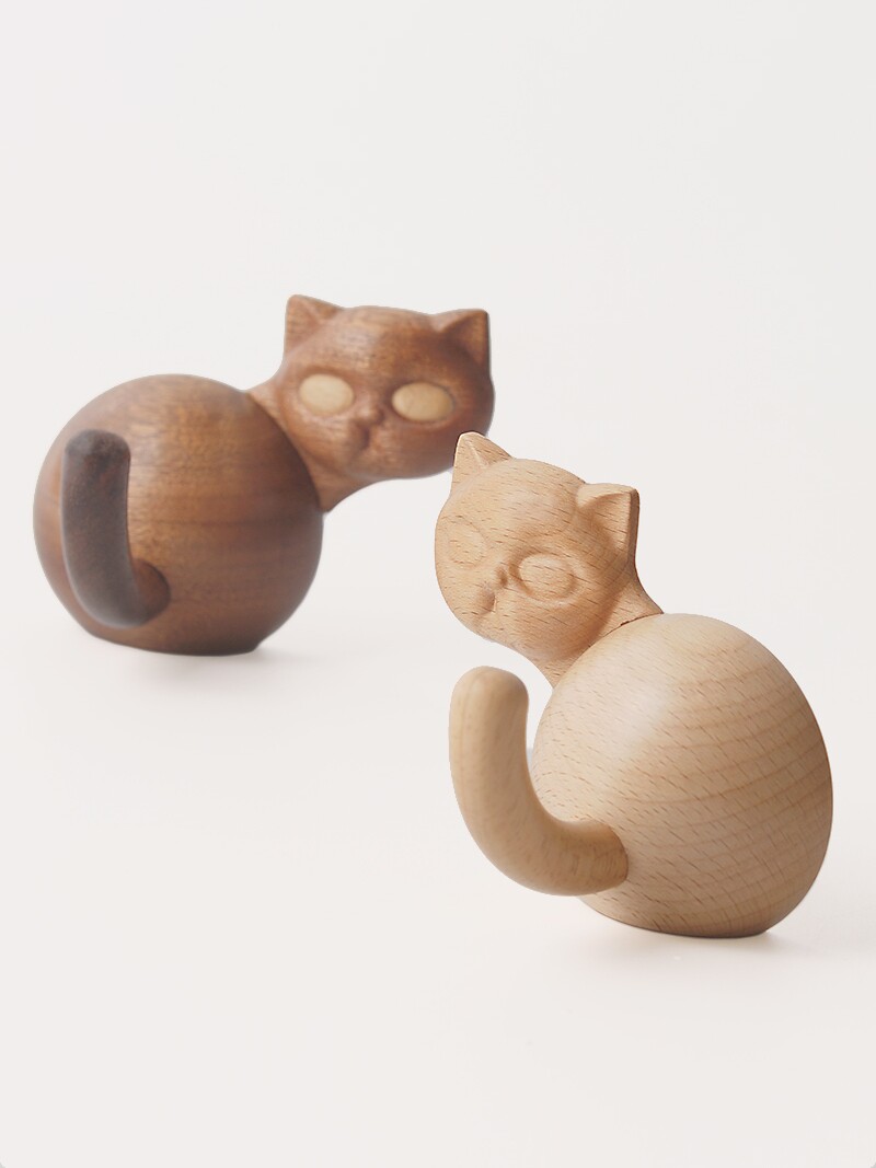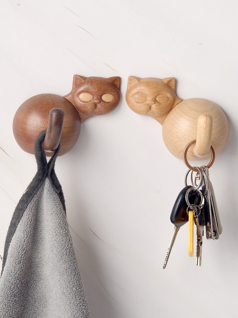 📚 几人设计创意小猫实木装饰挂钩可爱动物原木北欧风免打孔