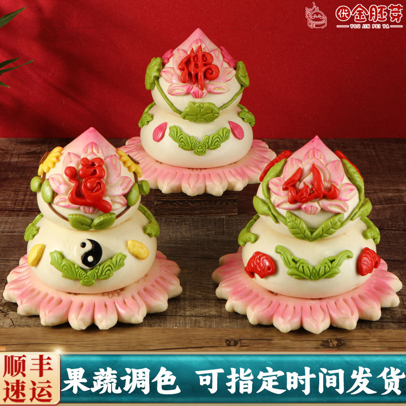 📚 新年过年上供佛道仙馒头贡品莲花佛前佛堂供佛摆供寿桃花馍花饽饽