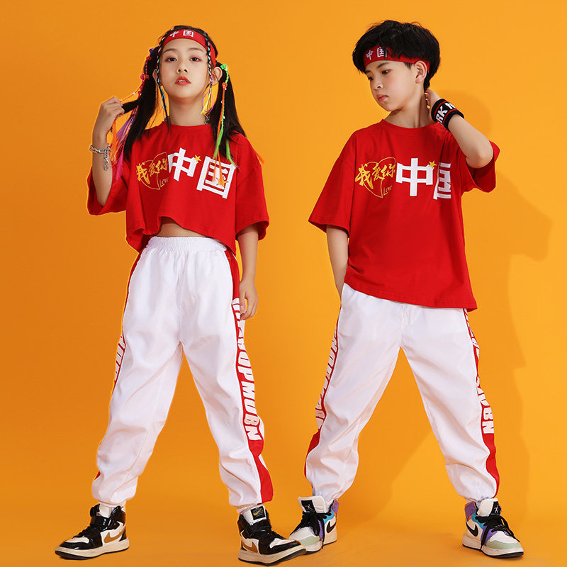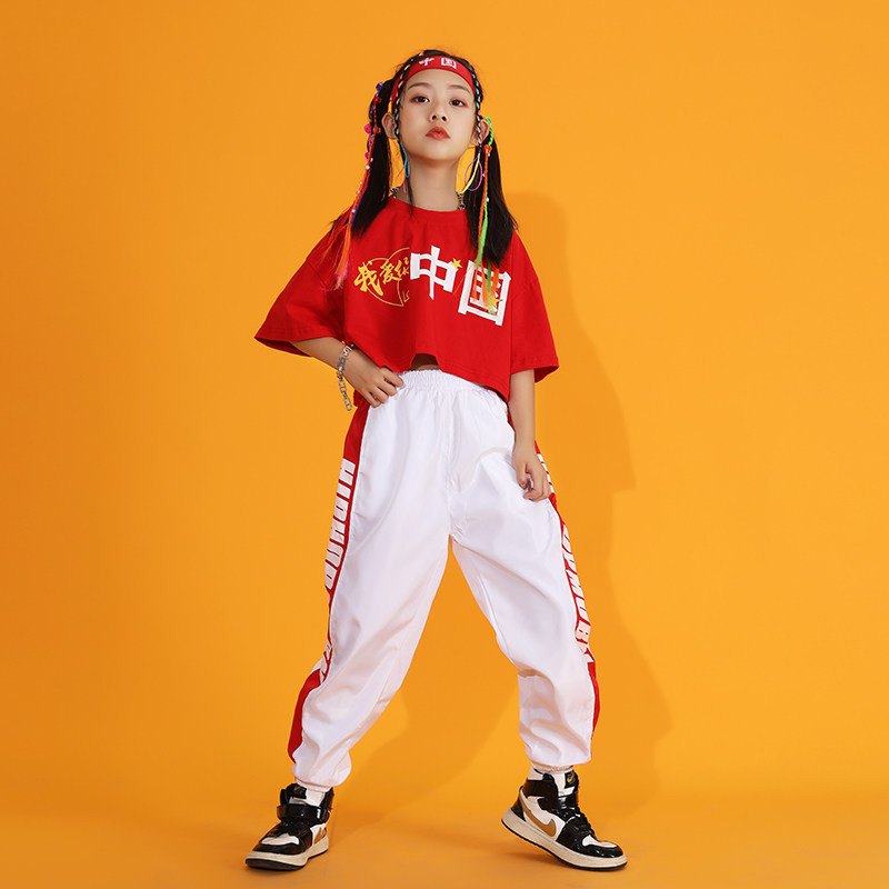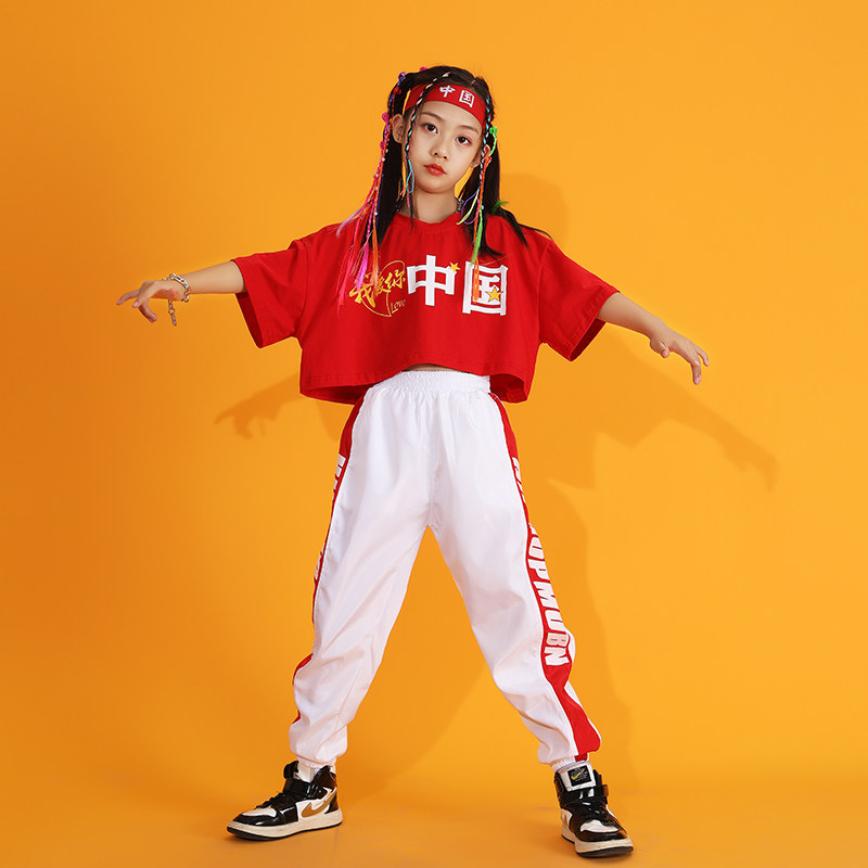 👗先说说这款套装的外形,真的是女孩们的心头好。红色的基调配上嘻哈街舞的风格,真的是让孩子们热血沸腾!无论是露脐短袖的设计,还是运动元素满满,都透露出一种活力四溢的气息。