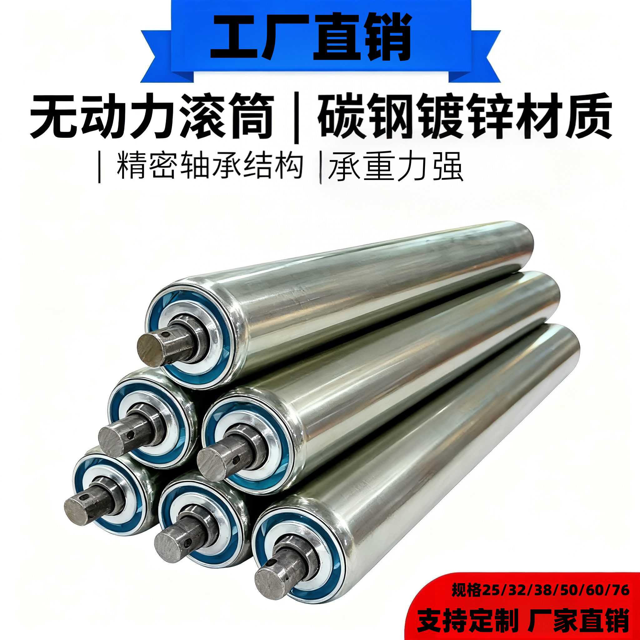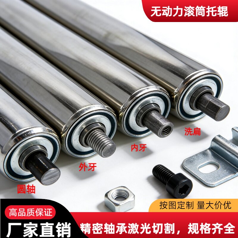 📚 无动力托辊滚筒不锈钢托辊 25/32/38/50/60 输送带流水线辊筒轴