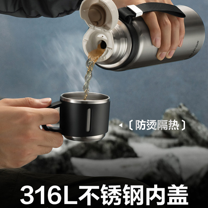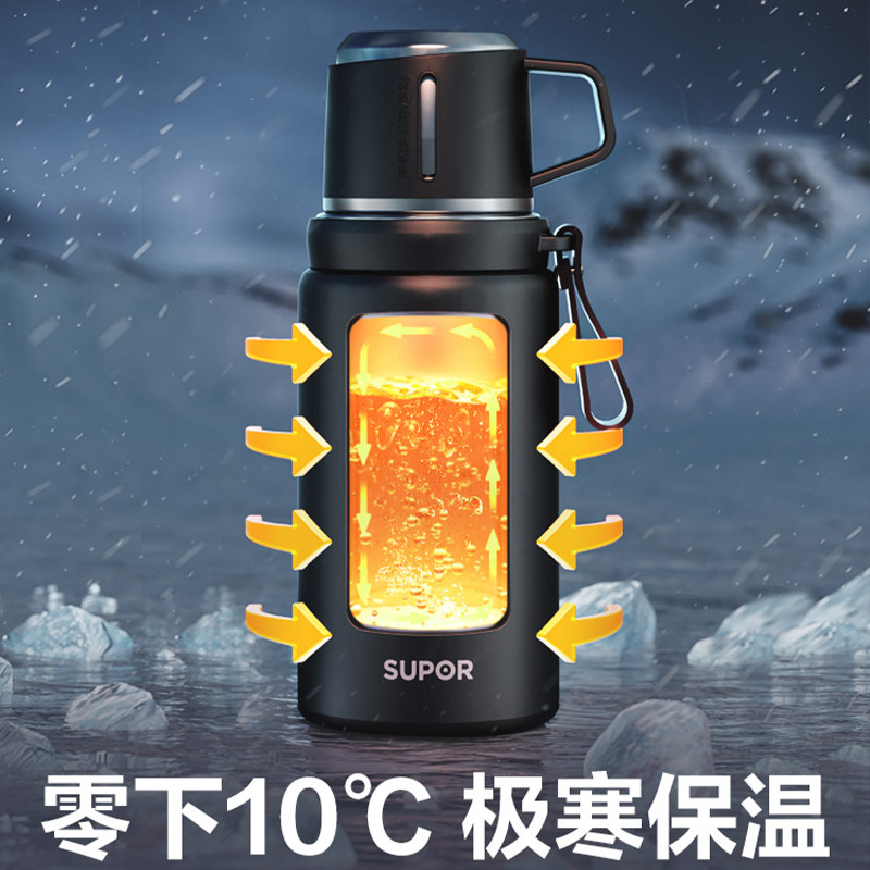📚 苏泊尔保温杯1000ml随享水壶茶杯316L不锈钢双饮KCV10CG10曜石黑