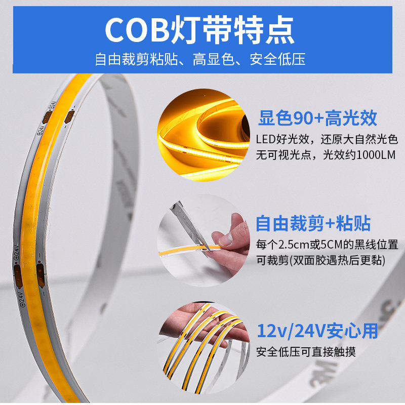 📚 低压cob灯带12v/24v自粘超薄软灯条装饰线形灯铝槽广告酒柜柔性
