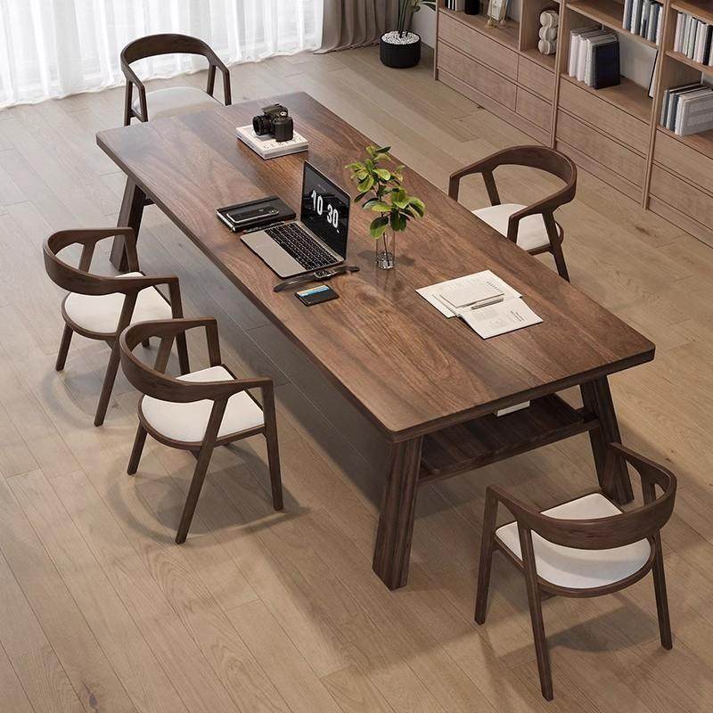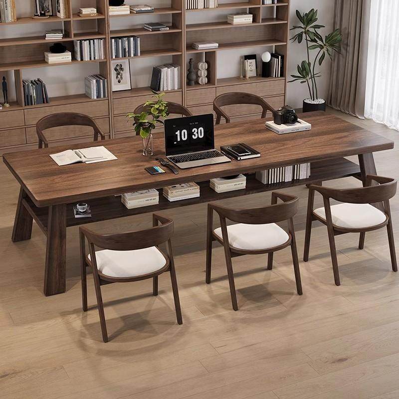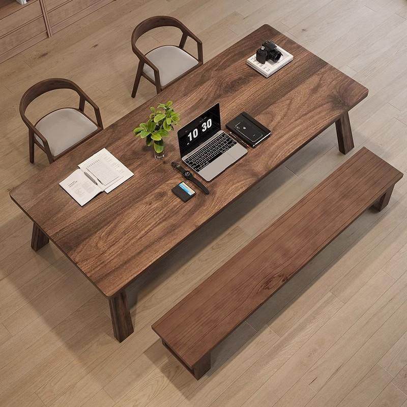 📚 南美黑胡桃木原木客厅大长书桌家用工作台学习桌实木双层办公桌