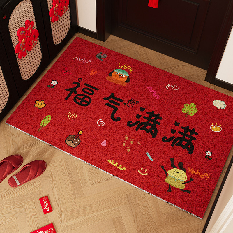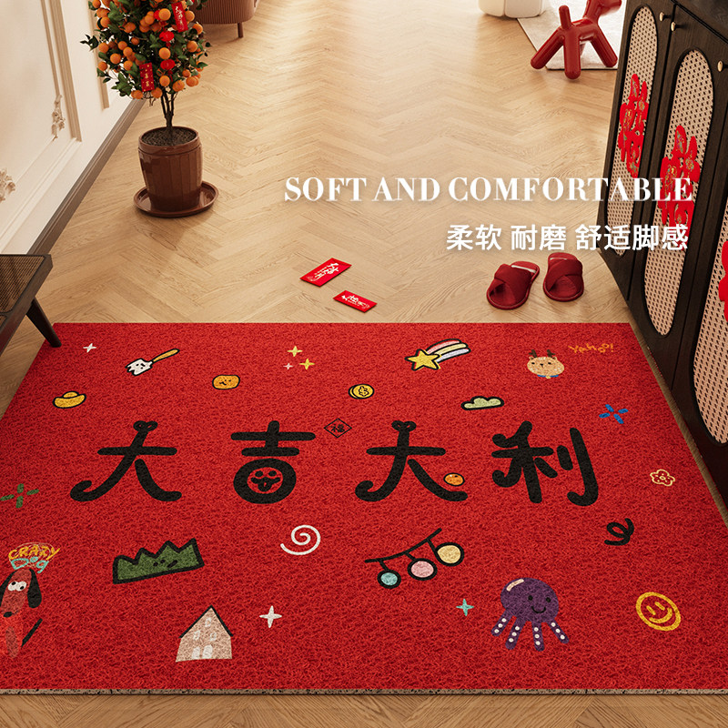 📚 卡通入户门地垫红色丝圈大门口室内进门脚垫玄关防滑门垫地毯定制