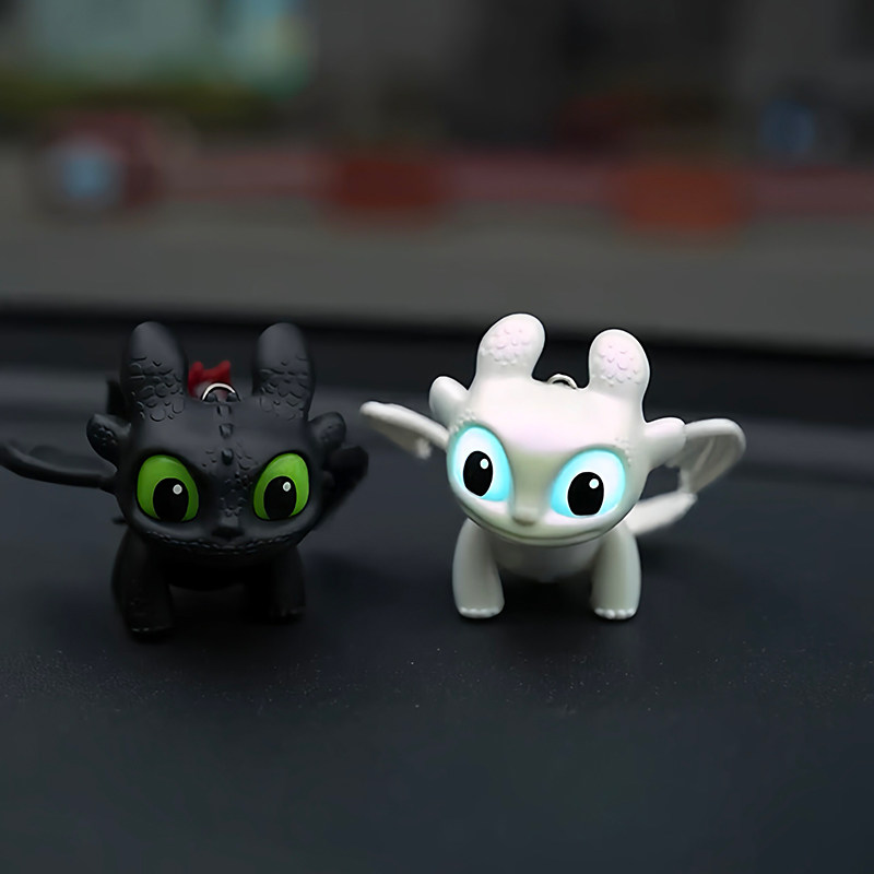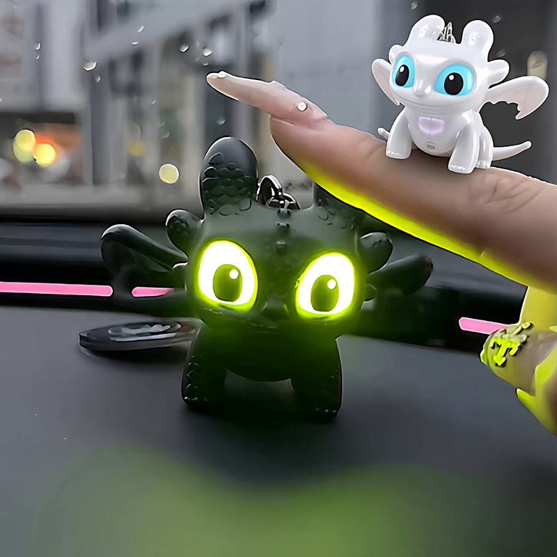 📚 可爱驯龙高手无牙仔汽车摆件夜煞翅膀会动发光车载中控台装饰挂件
