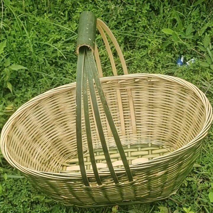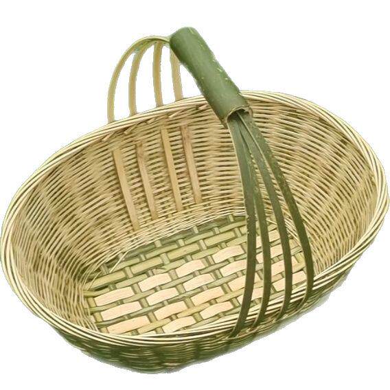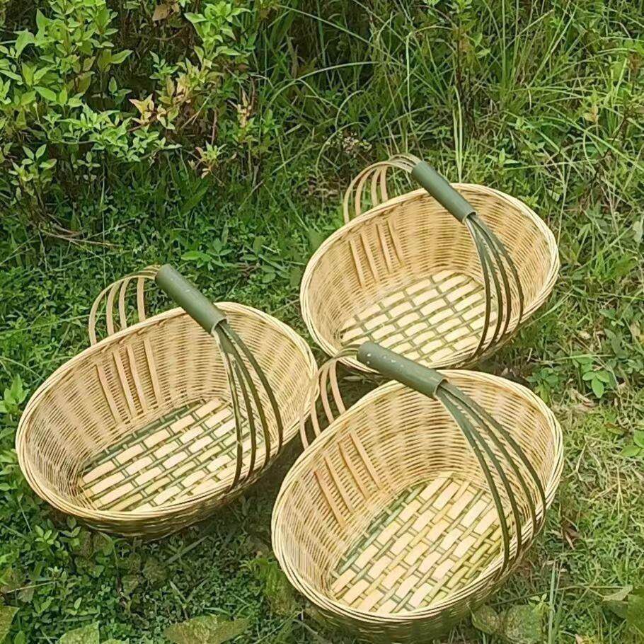 📚 竹编制品家用椭圆形手提篮买菜篮购物篮竹青编织鸡蛋篮竹篮子收纳