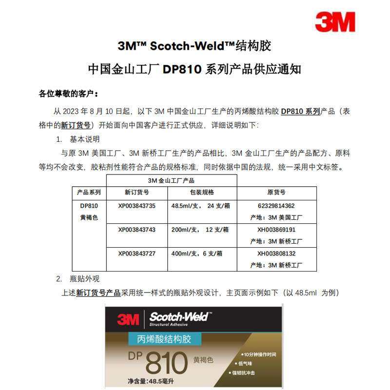 📚 3mdp810结构胶丙烯酸双组分强粘柔性抗冲击dp810低气味ab胶水