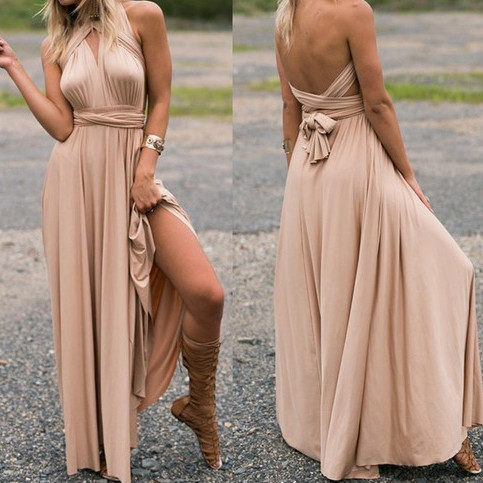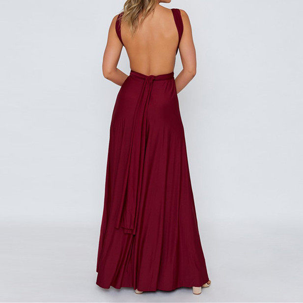 📚 Sexy Women Multiway Wrap Convertible Boho Maxi Club Red Dres