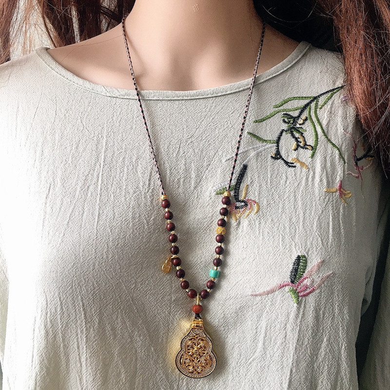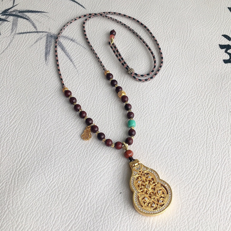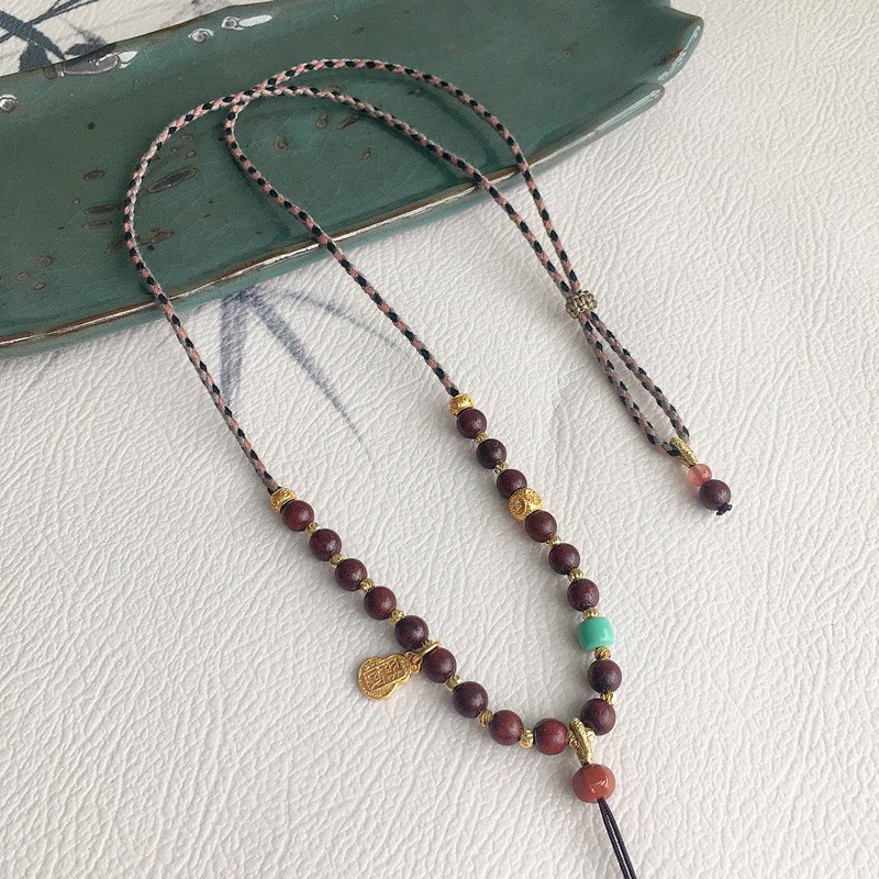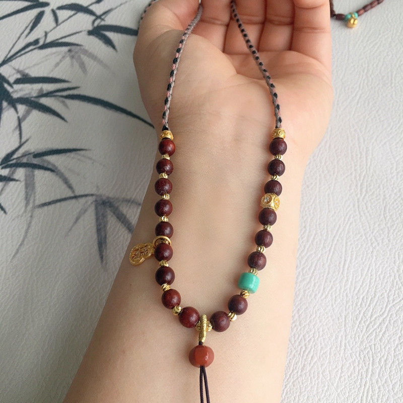 📚 新中式项链八宝盘子挂绳手编织平安扣绳子佛公挂绳紫檀木手搓棉绳