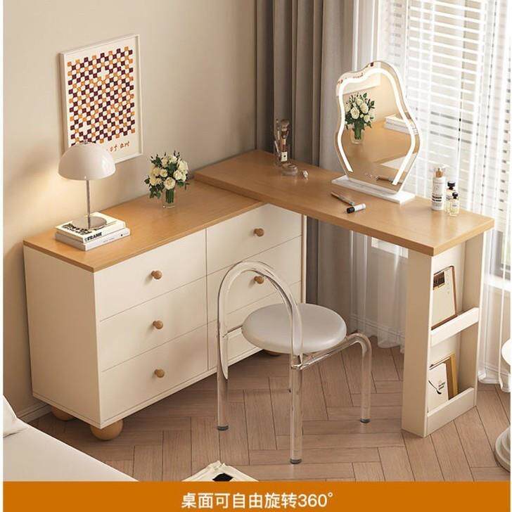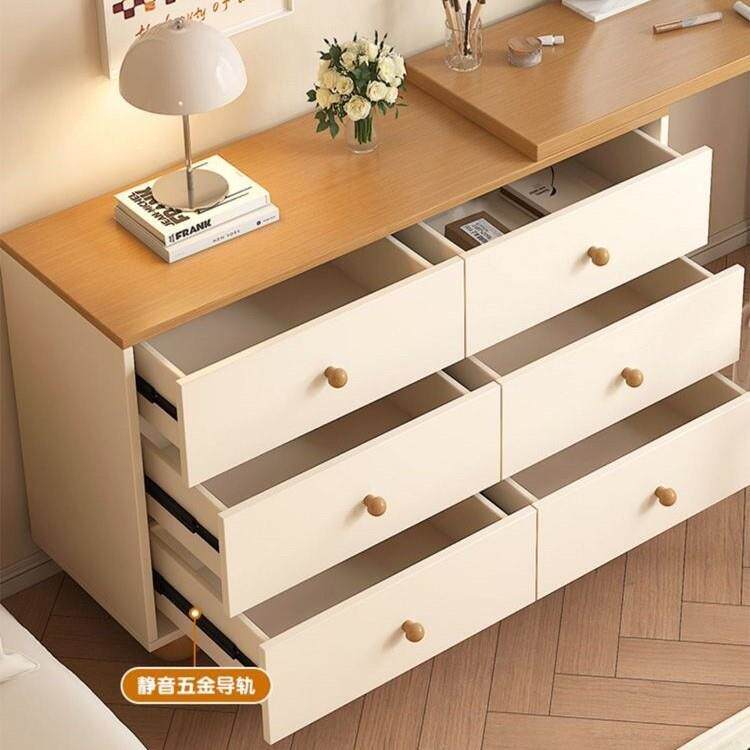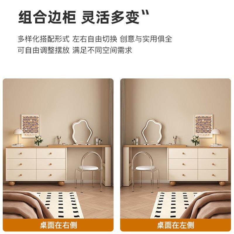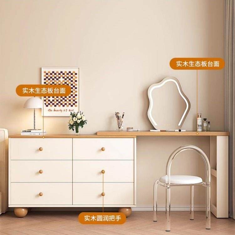 📚 奶油原木风梳妆台斗柜一体实木化妆桌卧室现代简约化妆台2025新款