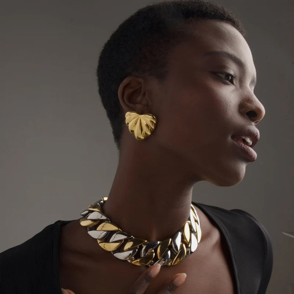 📚 欧美跨境爆款18k金不锈钢泡芙爱心形耳钉水滴胖乎乎羊角包耳环