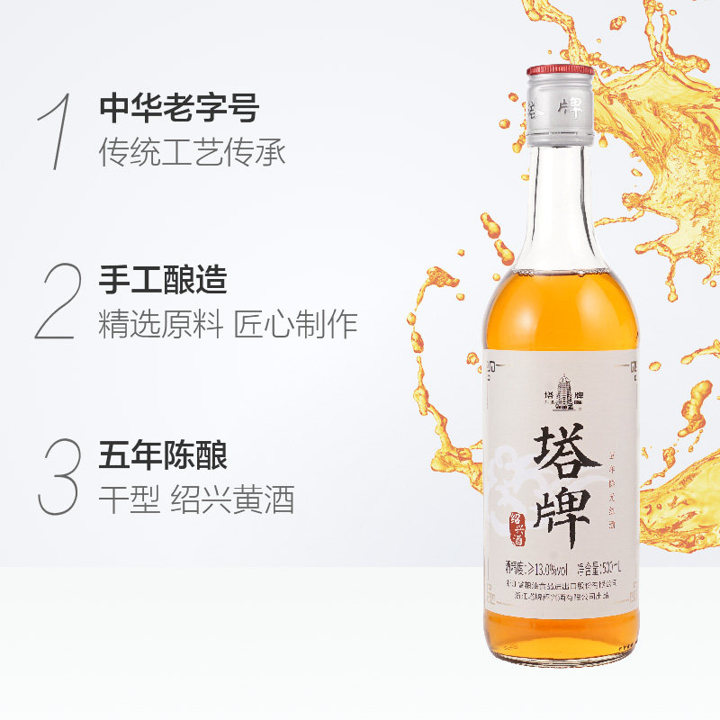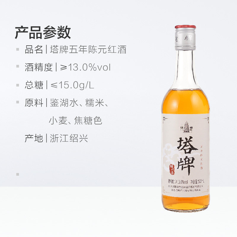 📚 塔牌黄酒五年陈元红酒500ml*6瓶绍兴酒手工冬酿糯米酒箱装