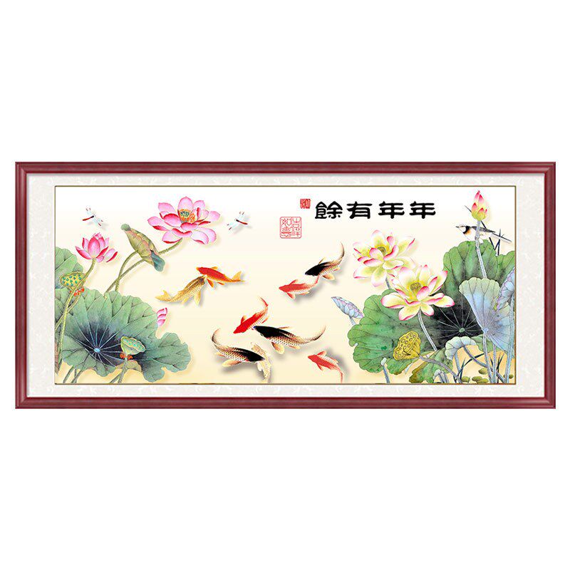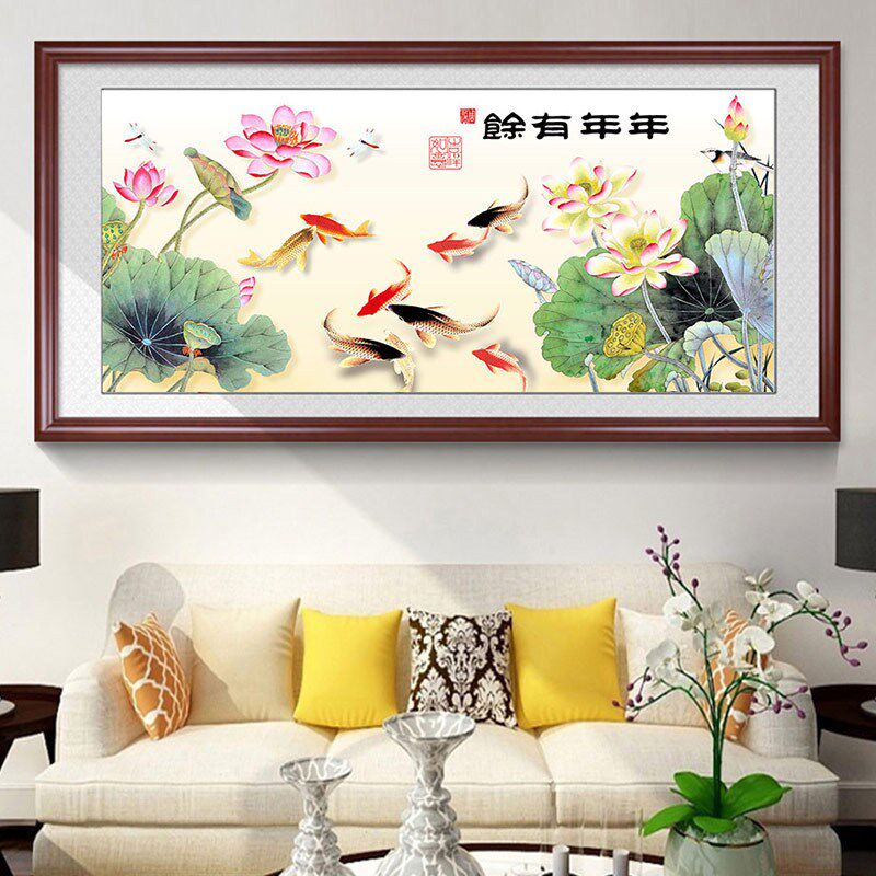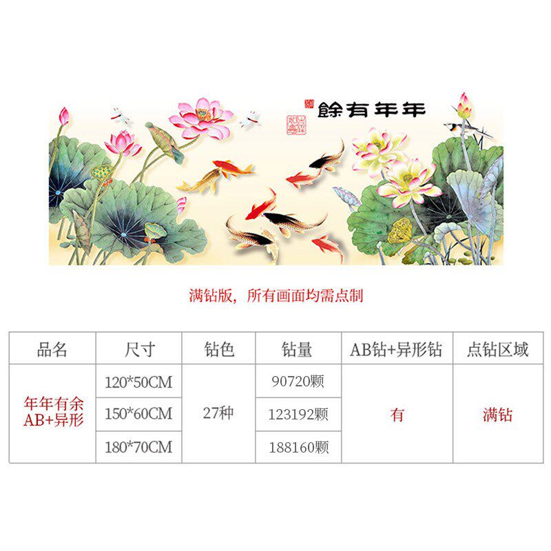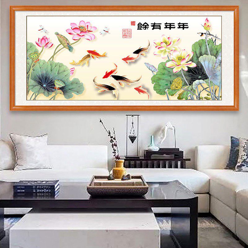 📚 速发鱼2021余新款客厅年年有年九画图满钻水晶自己手工2022