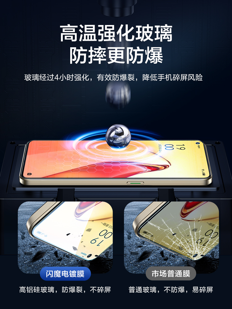 📚 闪魔opporeno8钢化膜reno8pro+全屏覆盖reno8无白边高清抗蓝光防摔防爆全包抗指纹手机保护膜带黑边款贴膜por