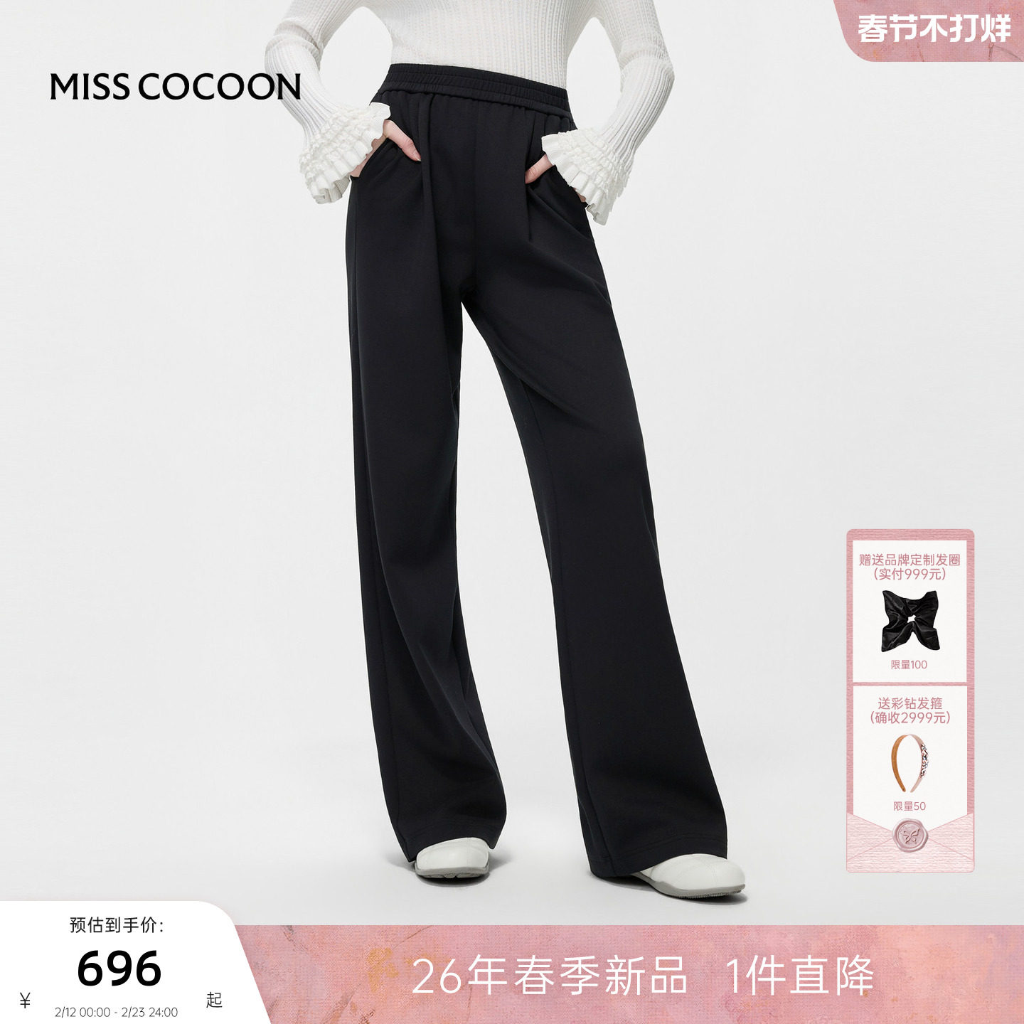 07¥ CZ005 EJP5UmLfQAj¥ https://m.tb.cn/h.7x01kz6 MISSCOCOON可可尼白色垂感阔腿裤女2026春新款简约针织棉质休闲裤 --------------------- 【原售价】1,199元 【现售价】929元。