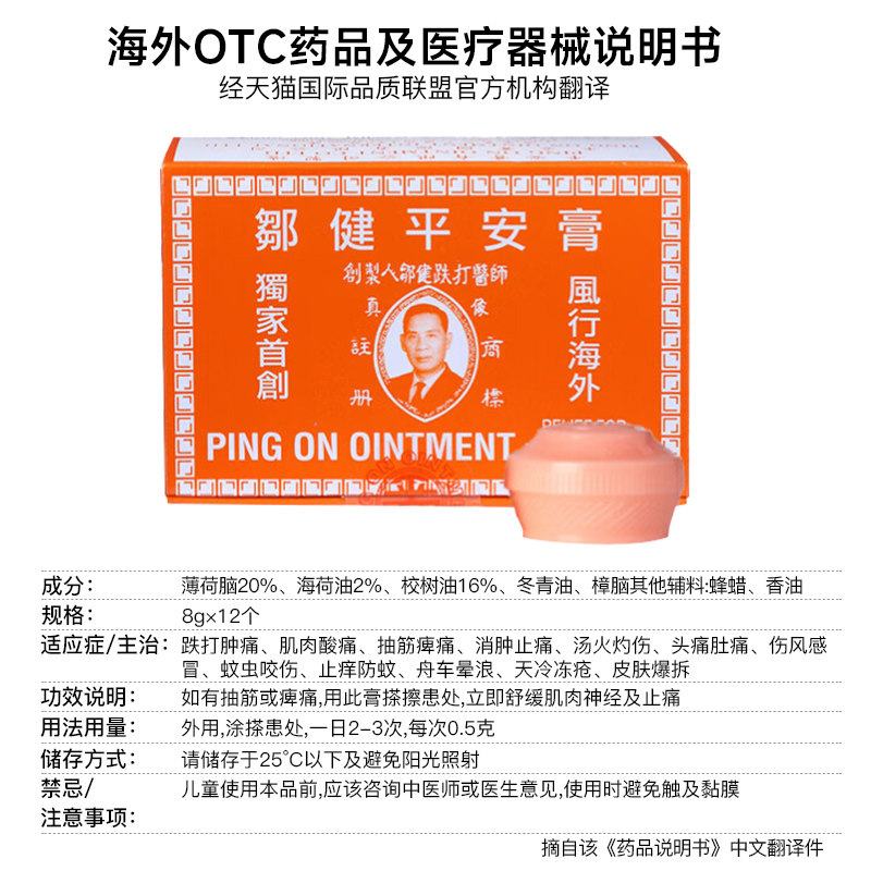 📚 香港邹健平安膏跌打肿痛止痒提神邹建可四季用平安膏正品港货原装