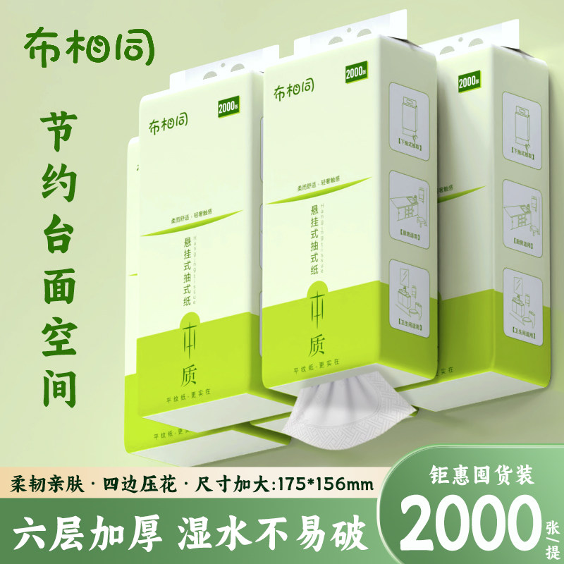 📚 布相同【2000张悬挂式纸巾】家用抽纸四边压花面巾纸商用整箱批发