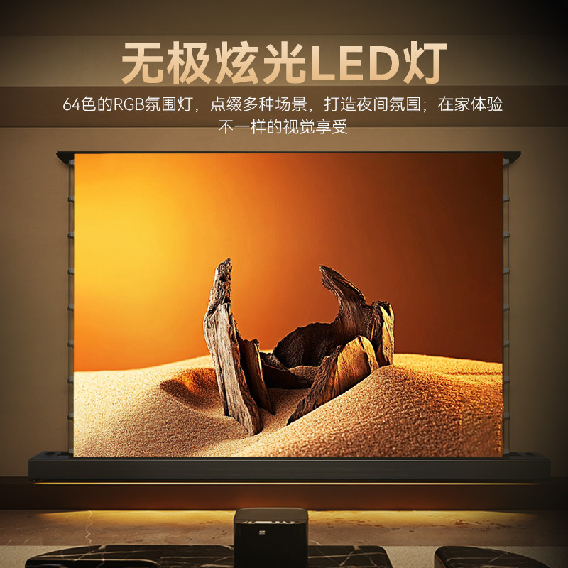 📚 微斯VCCG菲涅尔电动地升幕布氛围灯音响8K抗光超清家用办公智能语音遥控自动升降便携移动投影幕免安装免打孔