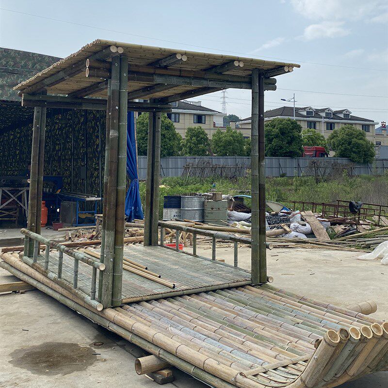 📚 双层组装竹筏遮阳棚竹筏船橡皮艇冲锋钓捕鱼漂流渔船水上竹排雨棚