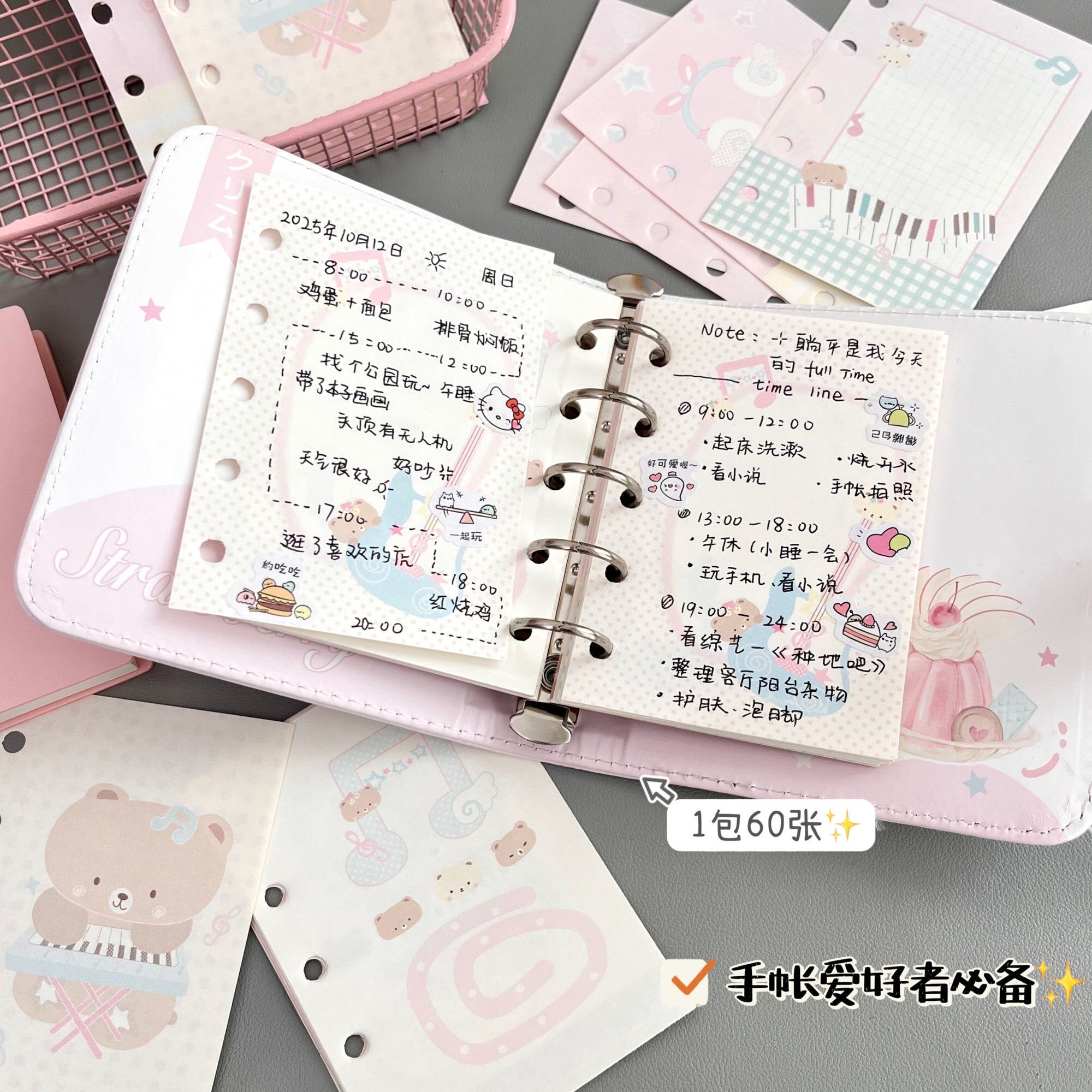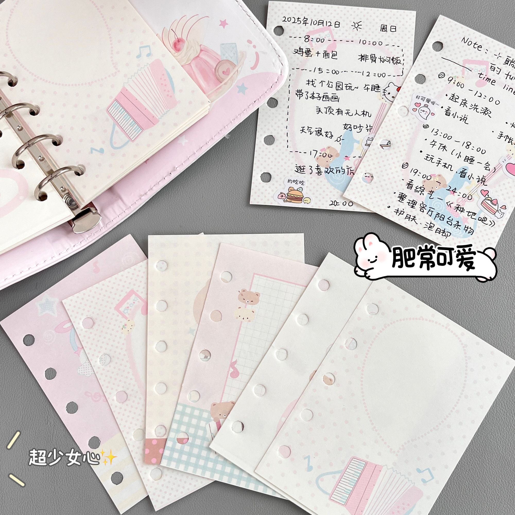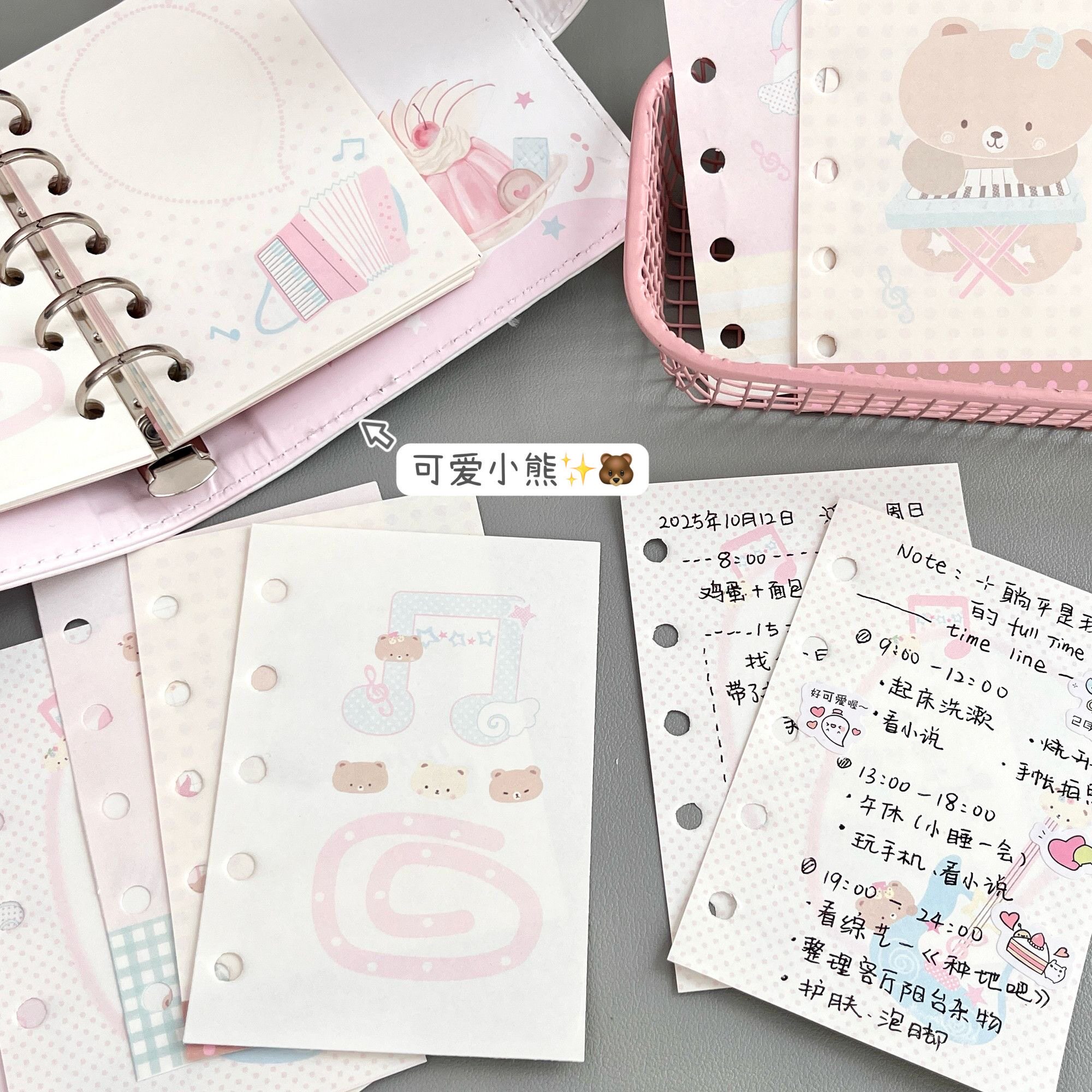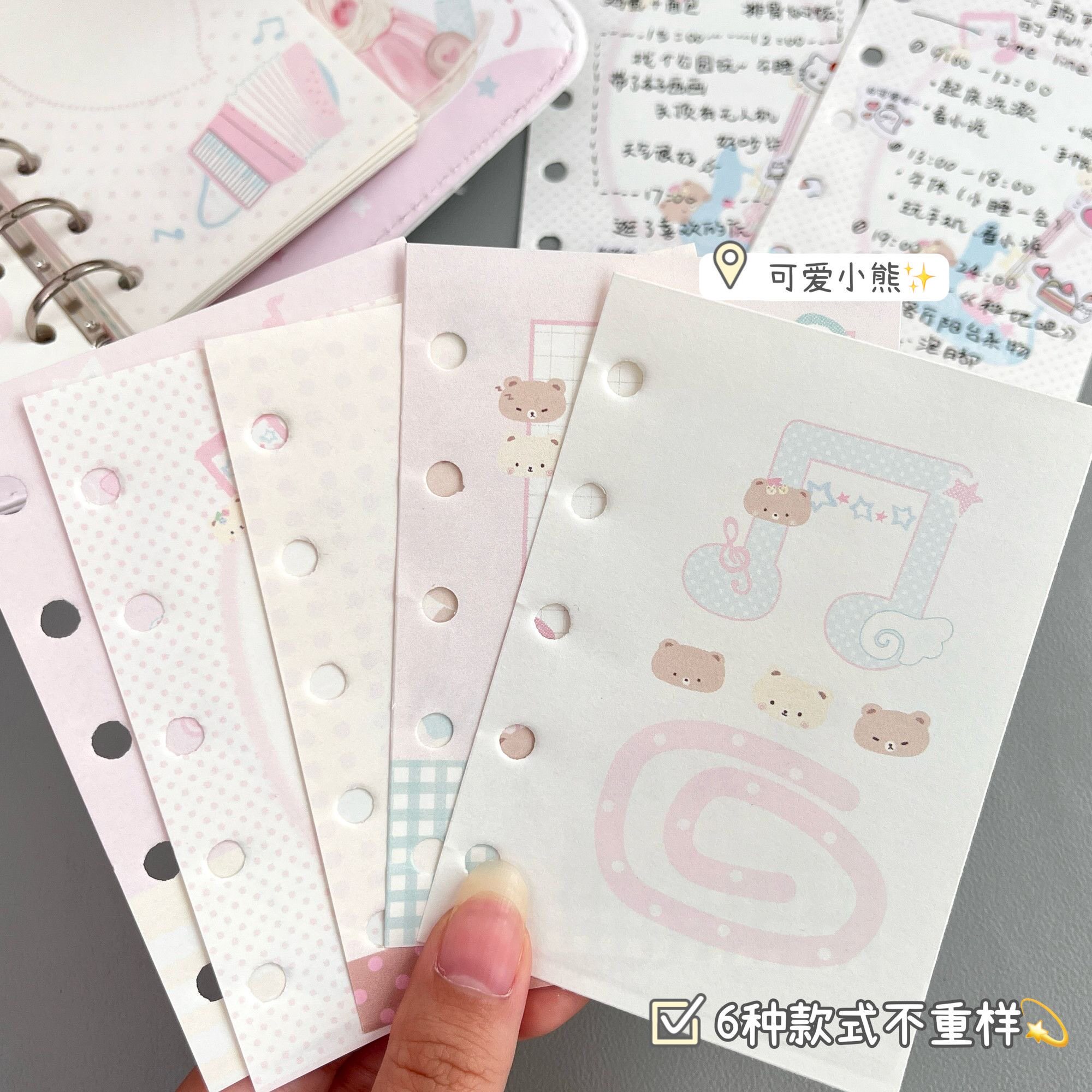 📚 原创音乐小熊M5替换活页替芯可爱卡通创意内页6种款式高颜值手帐素材可拆卸5孔替换活页芯手账素材手账内页纸