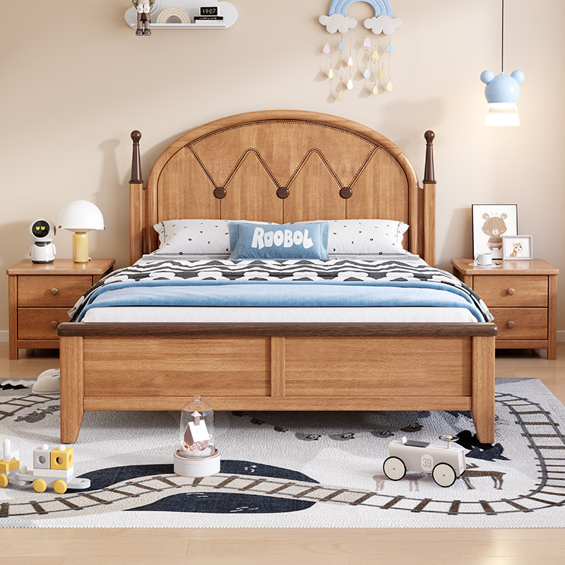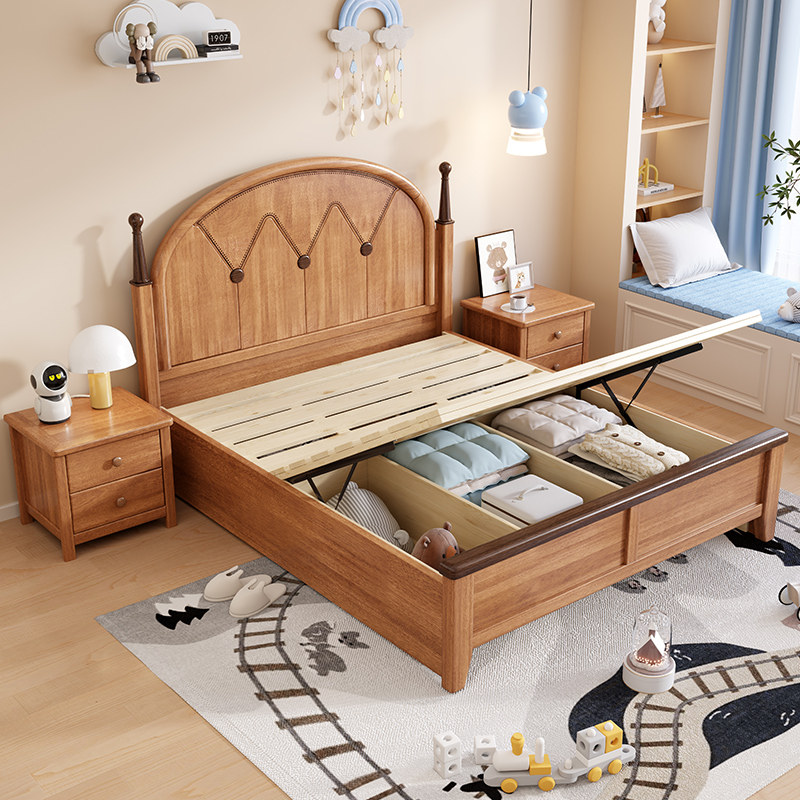 📚 儿童床金丝檀环保简奢全实木男女孩1.2美式1.35储物1.5单人床储物