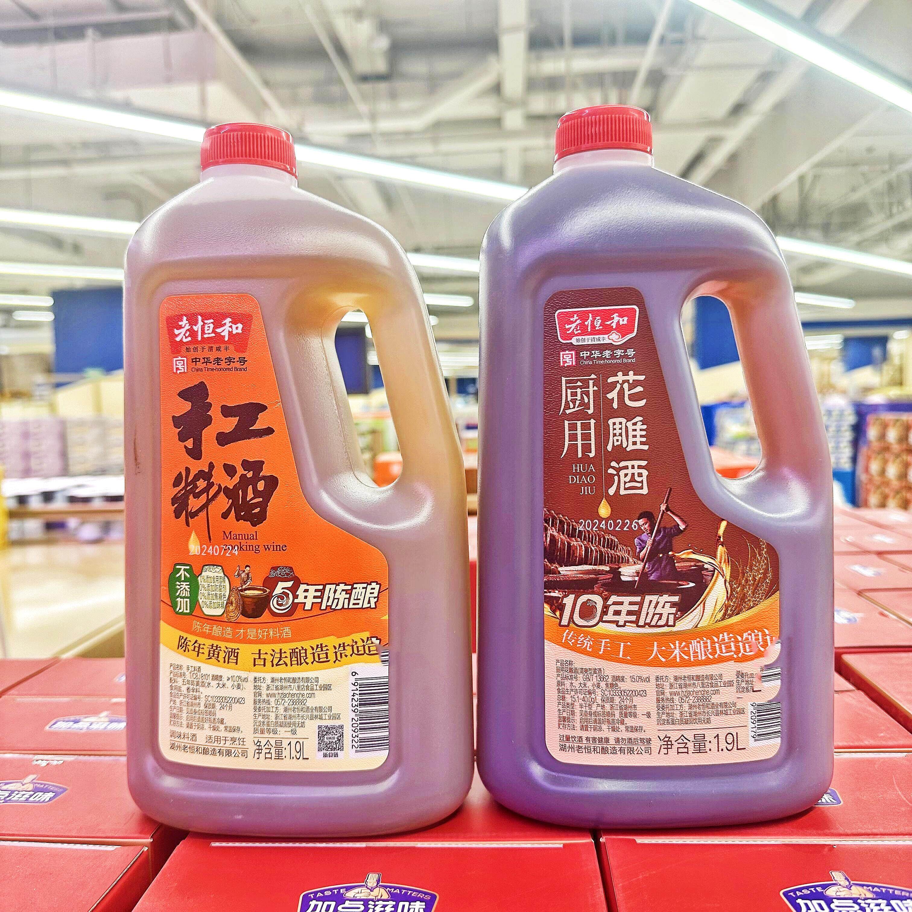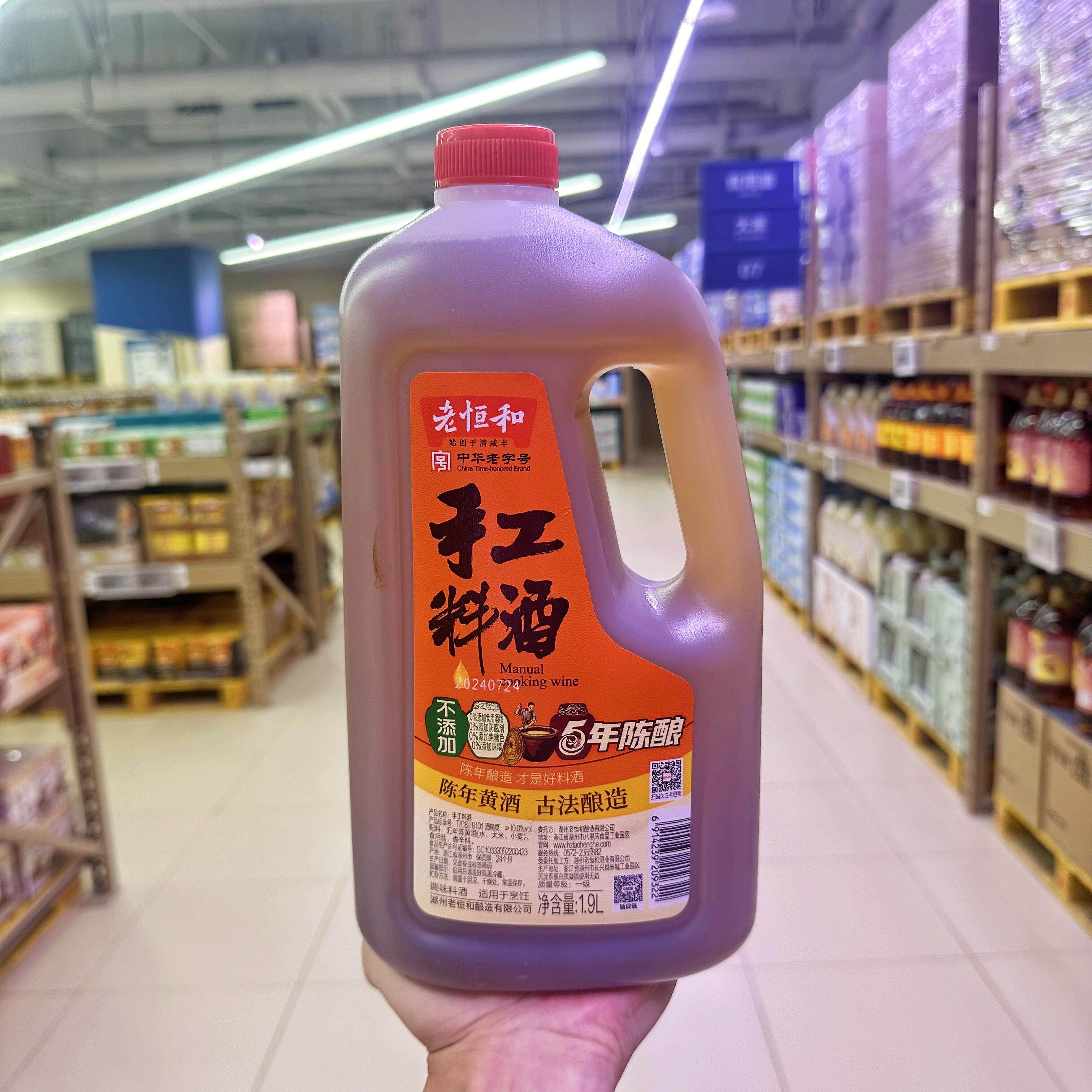 📚 盒马老恒和手工料酒5年陈酿1.9L非酒精勾兑厨用花雕十年陈酿1.9L