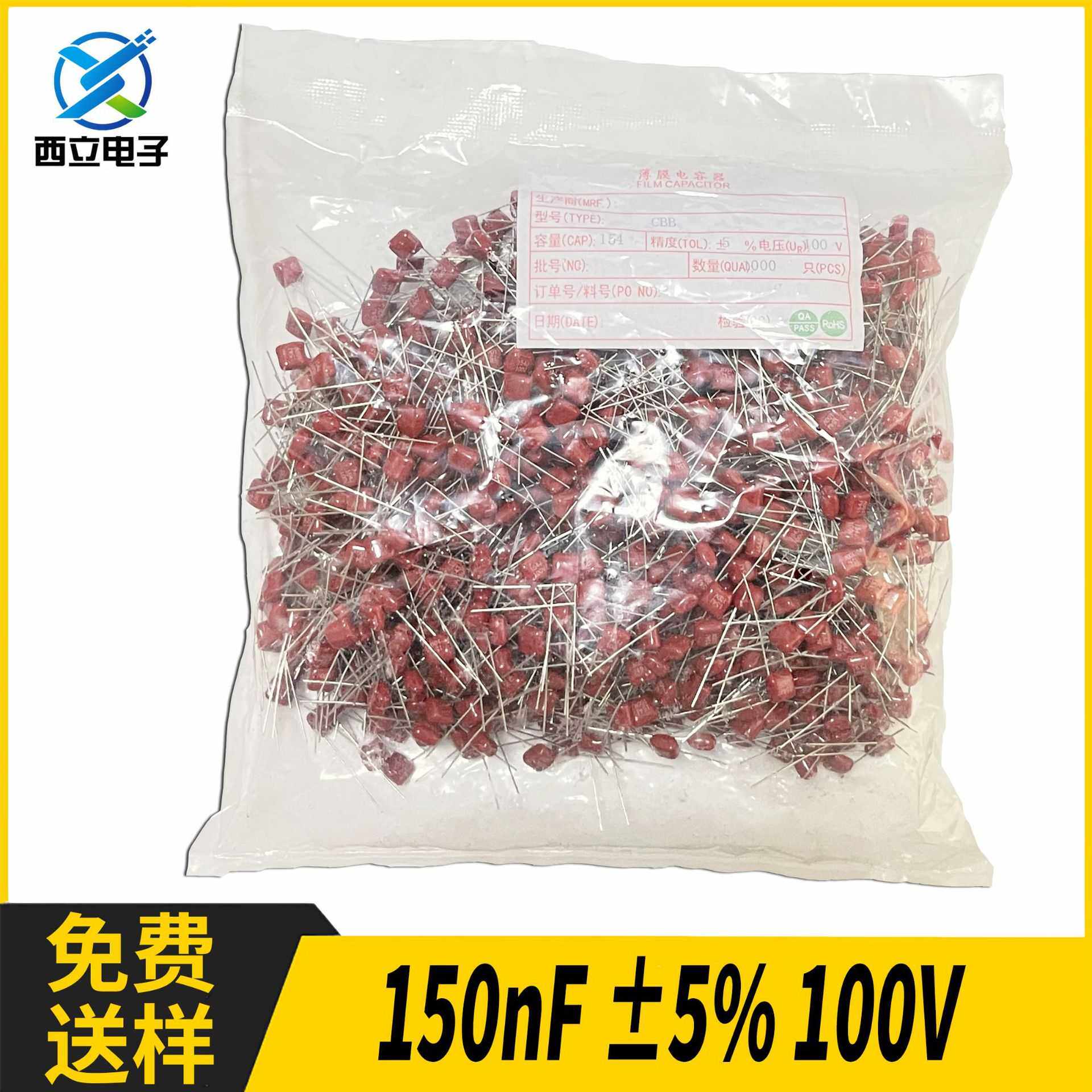 📚 插件薄膜电容 150nF ±5% 100V 手机无线充电用CBB电容