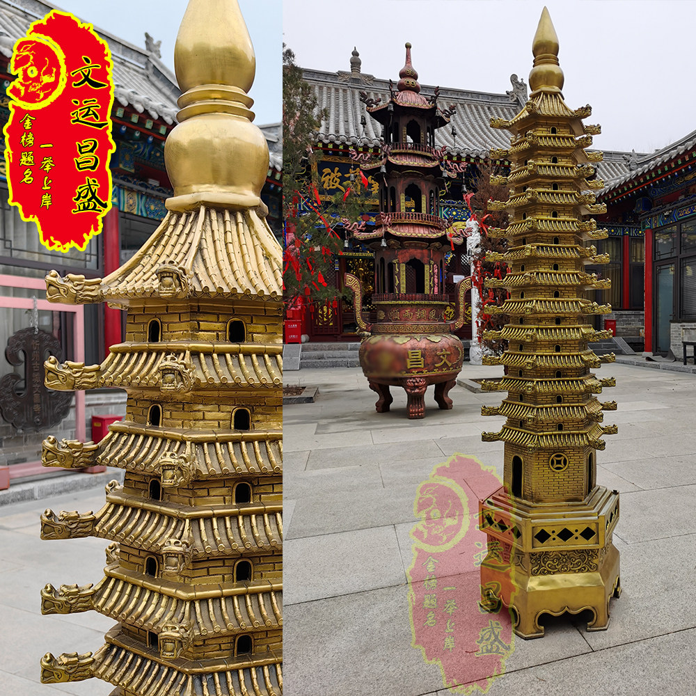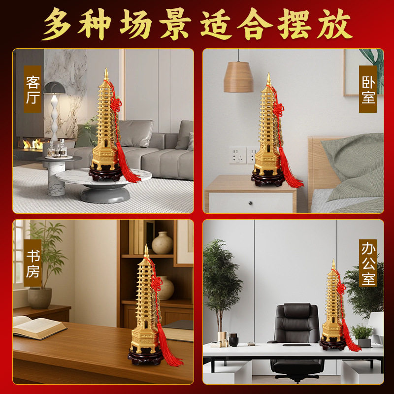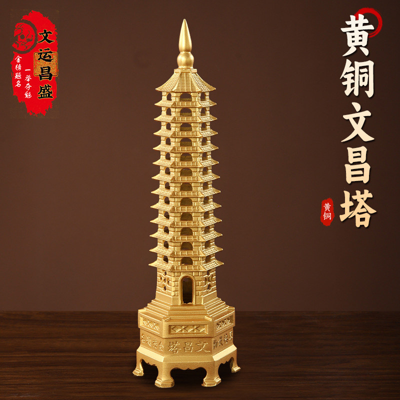 📚 纯黄铜制文昌塔摆件九层十三层金榜题名学习塔书桌书房文运昌盛阁