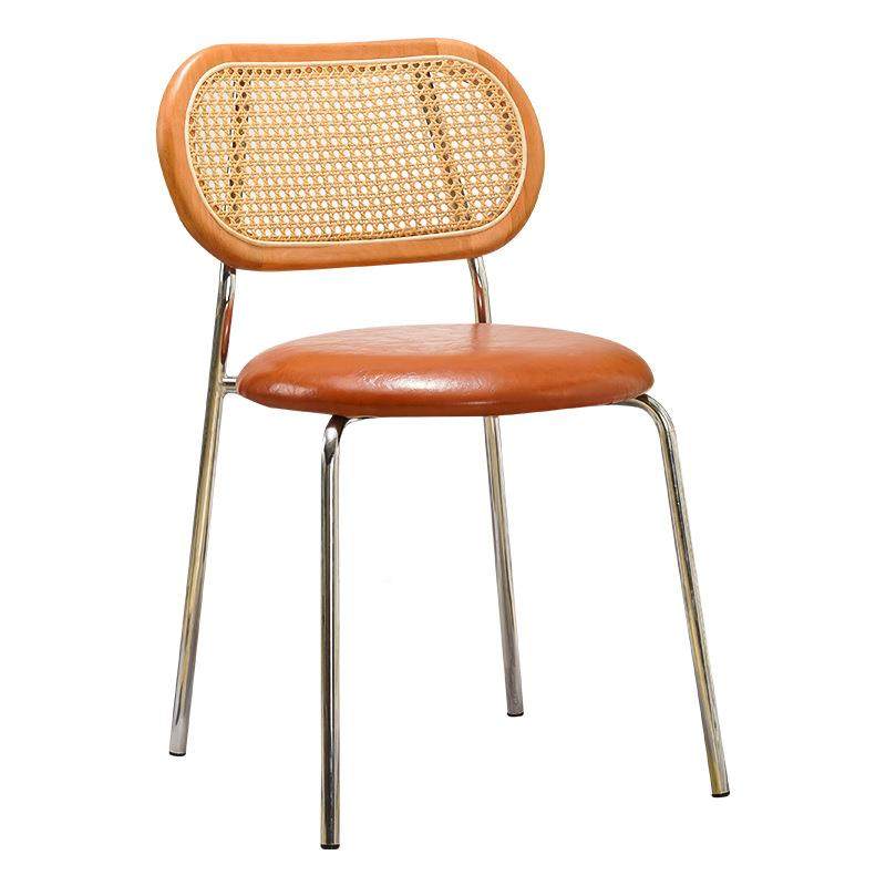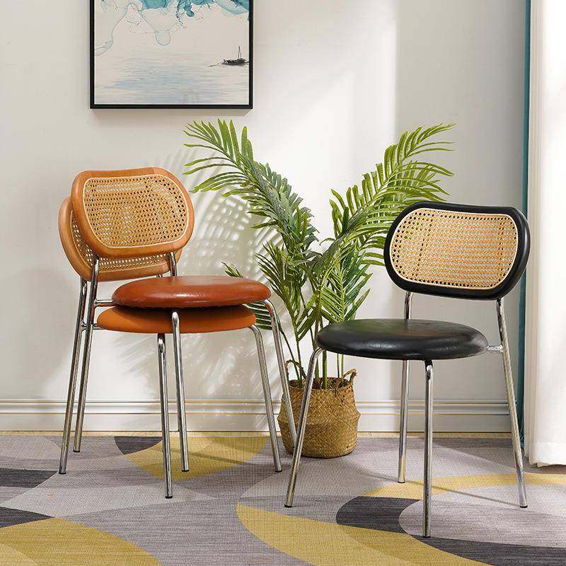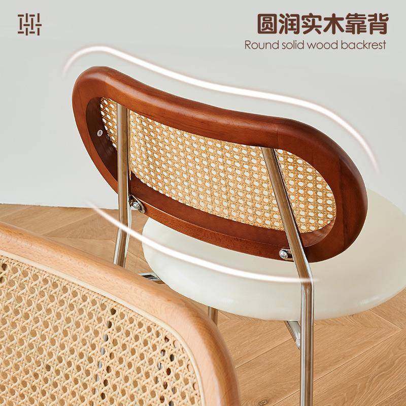 📚 实木餐椅设计师家用中古古藤编椅月圆椅复椅休靠闲餐厅背椅椅子简