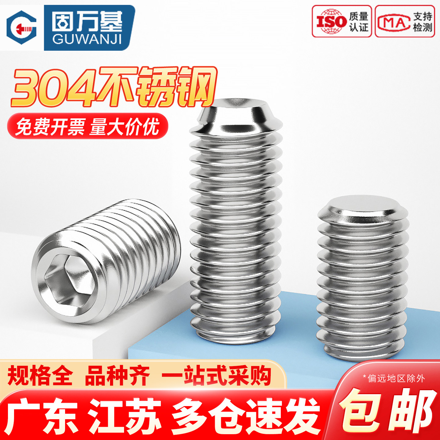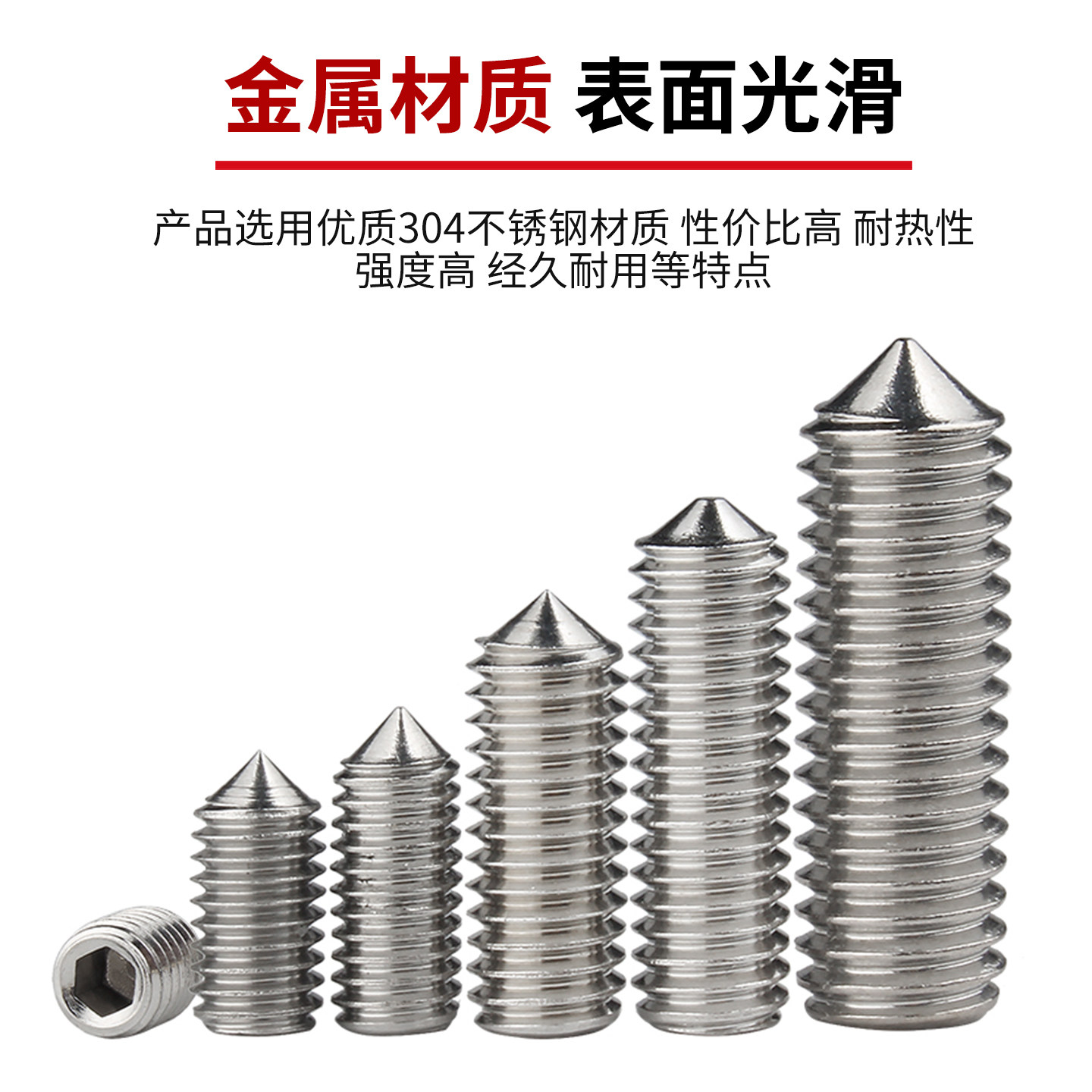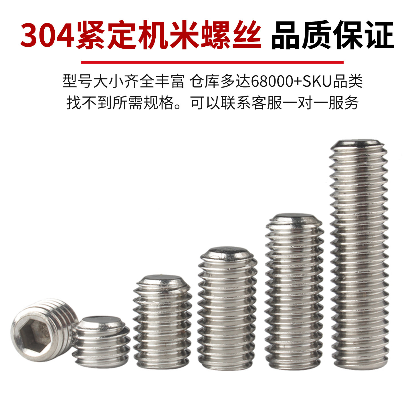 📚 304不锈钢凹端平端尖端紧定螺丝内六角无头机米螺钉顶丝止付螺栓