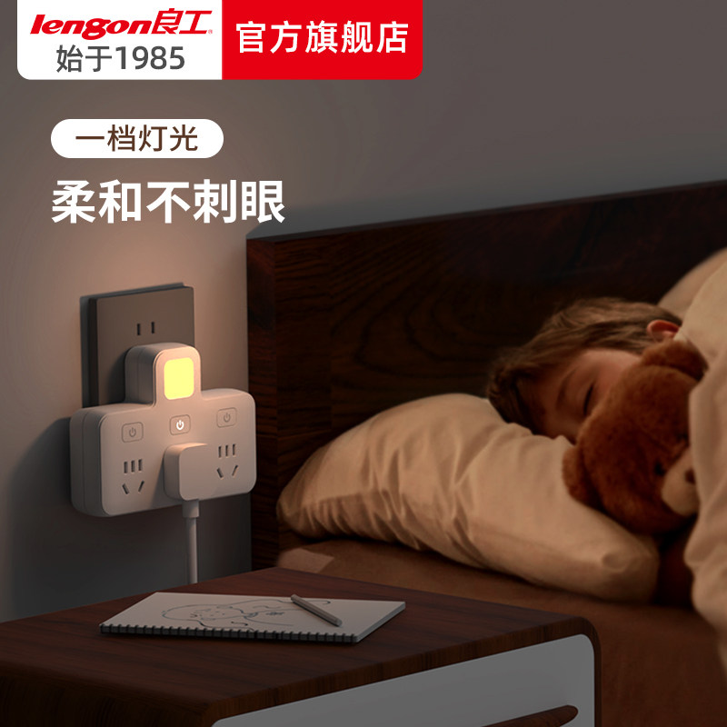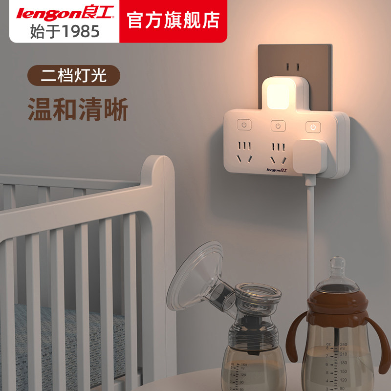 📚 良工插座转换器面板多孔无线排插插排接拖线板多用功能插头小夜灯