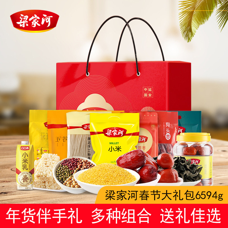 📚 梁家河2025年货398礼包黄小米狗头枣休闲零食杂粮节日礼盒6594g