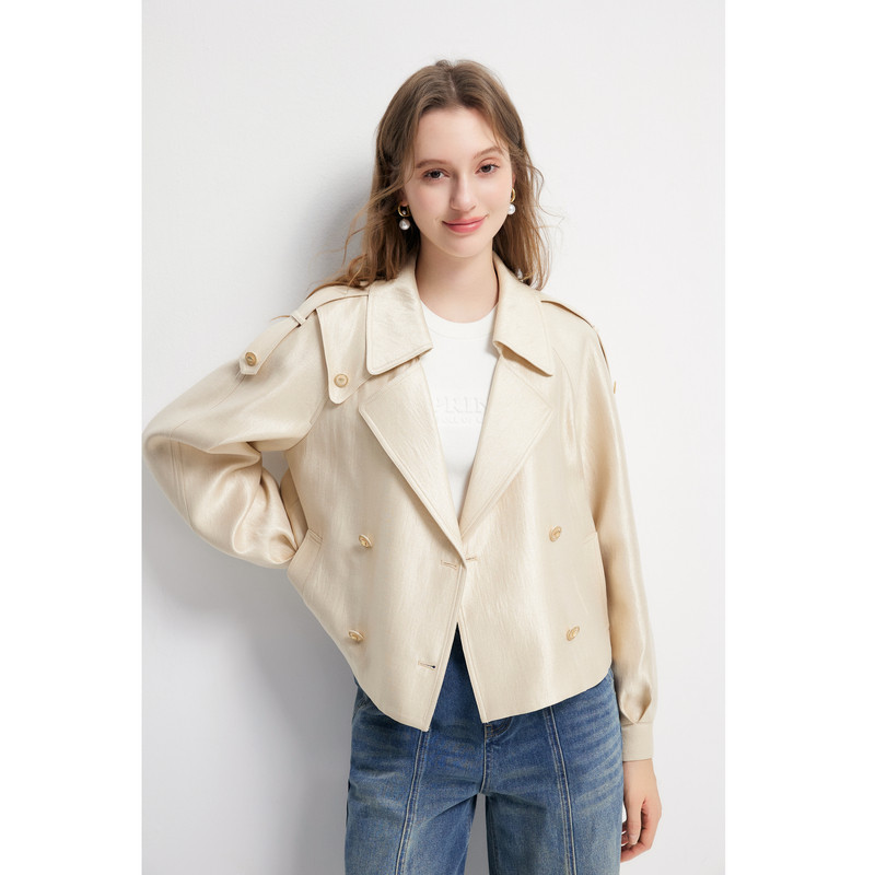 📚 秋水伊人简约翻领截短式风衣2025年秋季新款通勤风百搭H型短外套