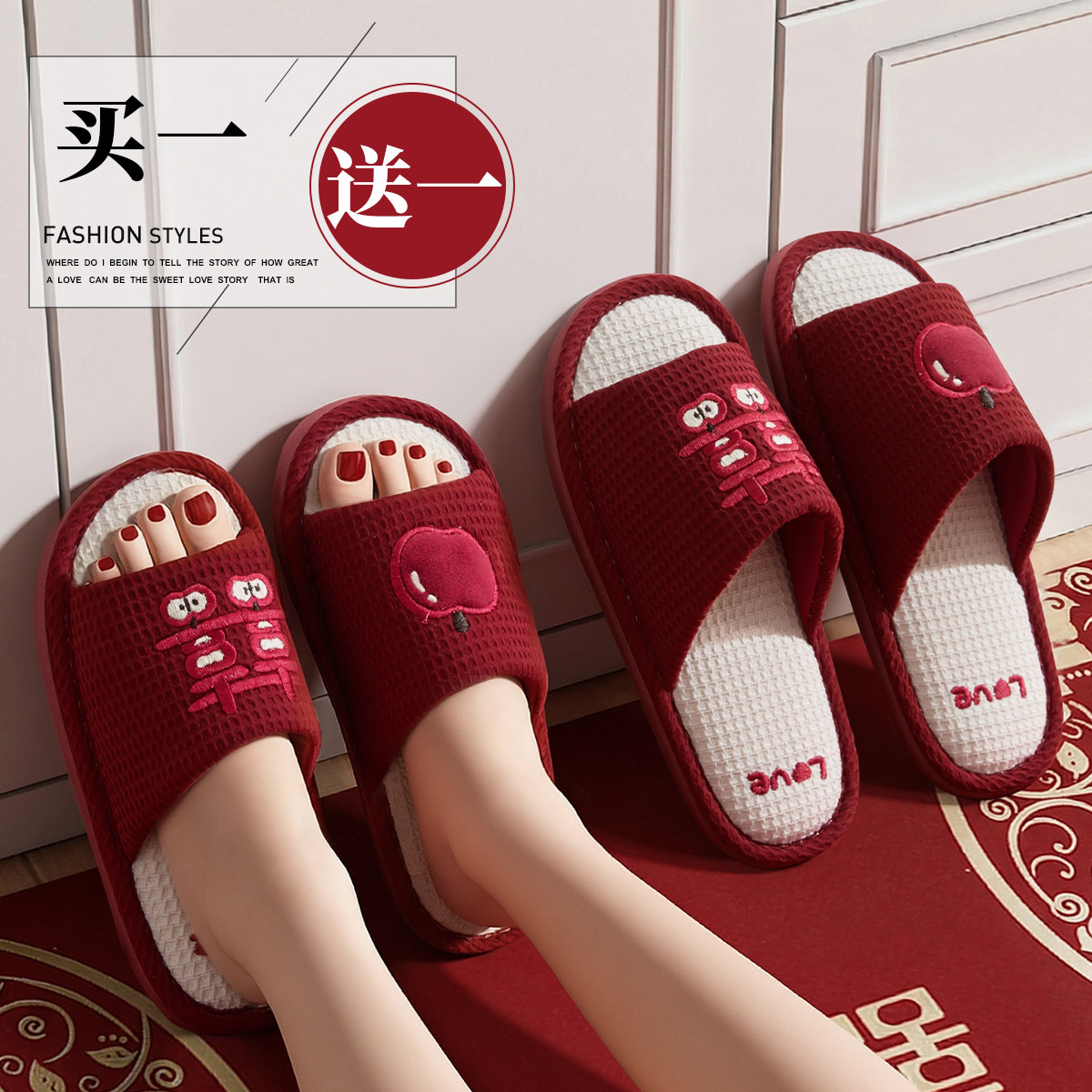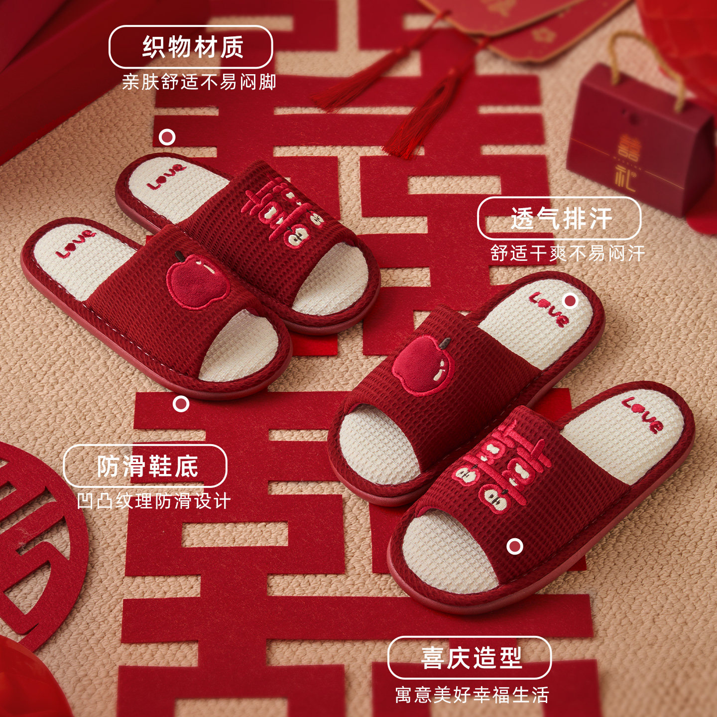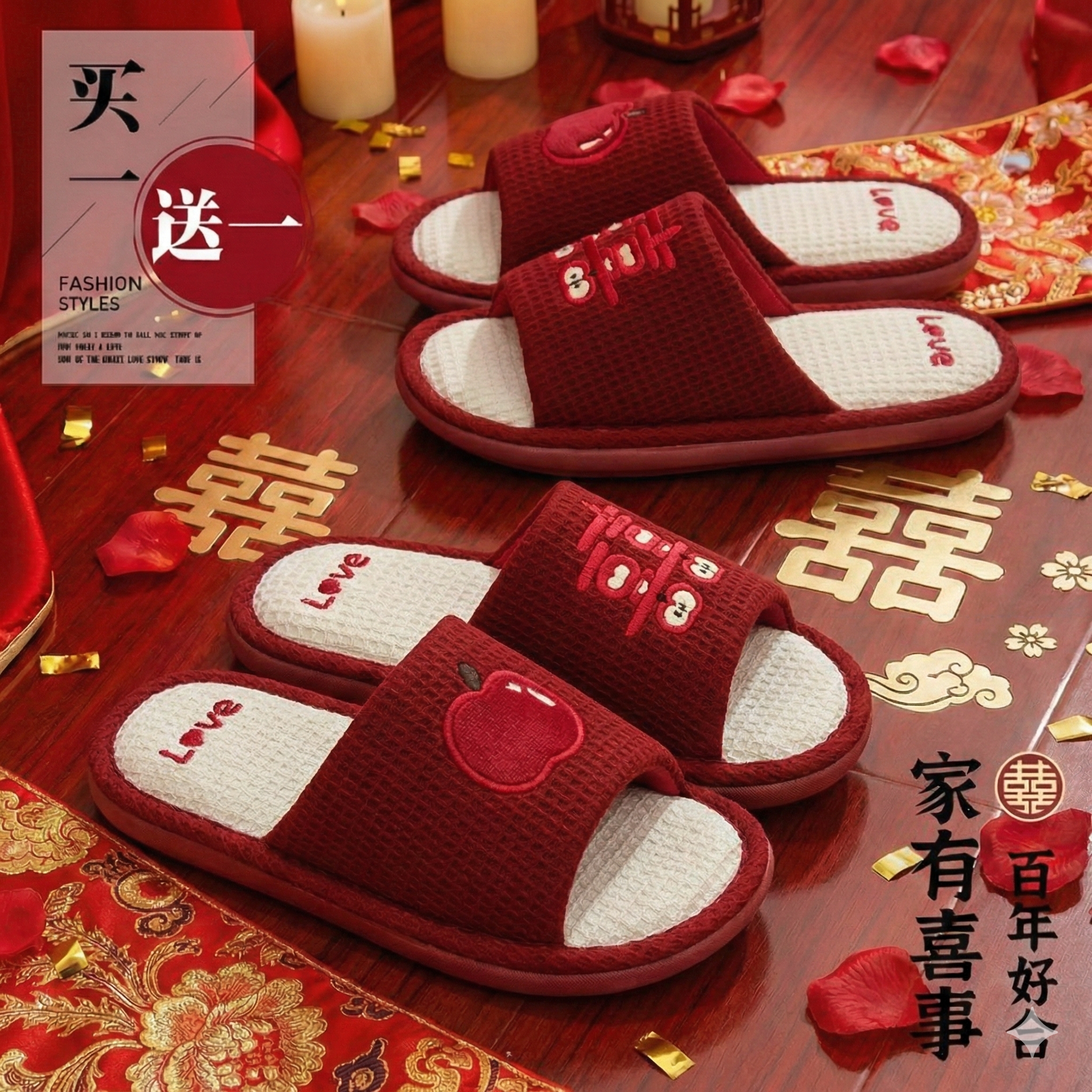 📚 利达妮红色拖鞋结婚一对喜庆高级新婚新娘陪嫁婚礼情侣晨袍婚鞋夏