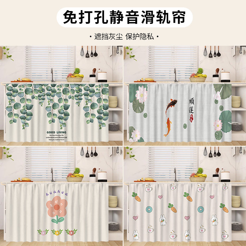 📚 心门厨房无门柜子遮挡帘免打孔滑轨门帘橱柜杂物遮丑衣柜防尘帘子
