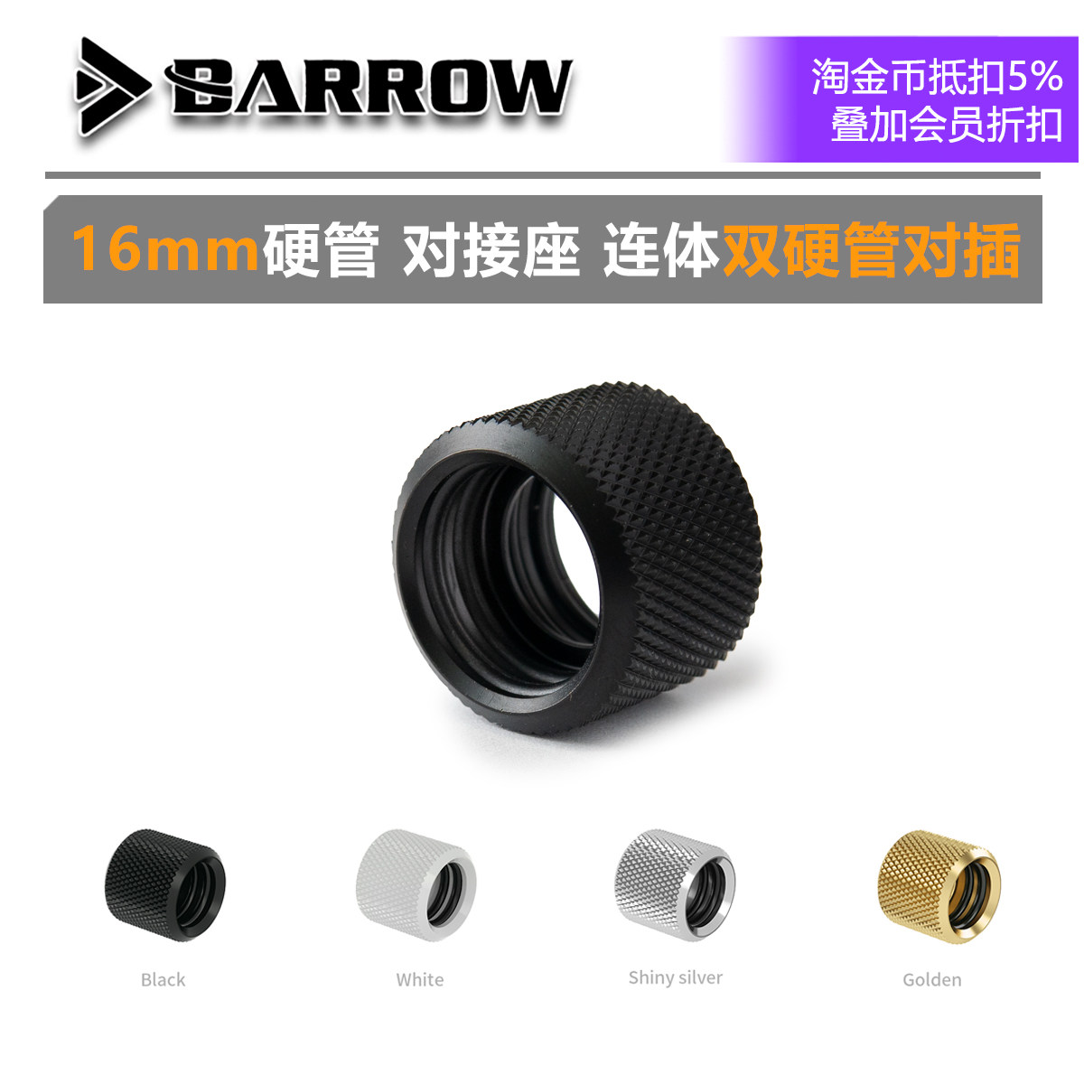 📚 Barrow 16mm 硬管 双快拧对接座 连体双硬管直插 TYDJ16-V1