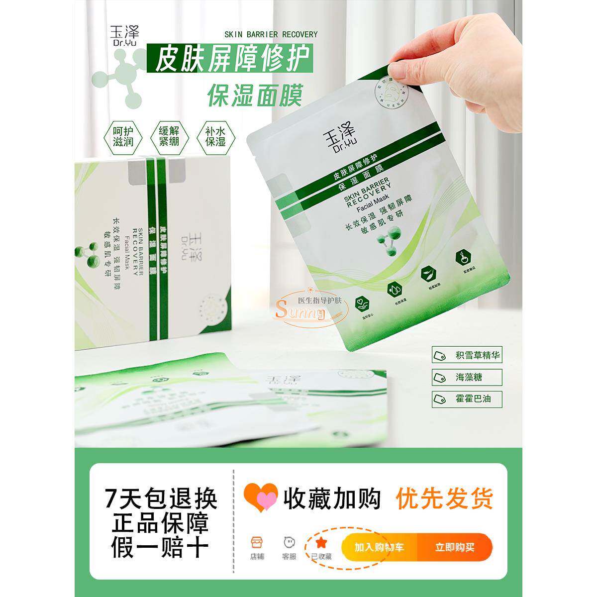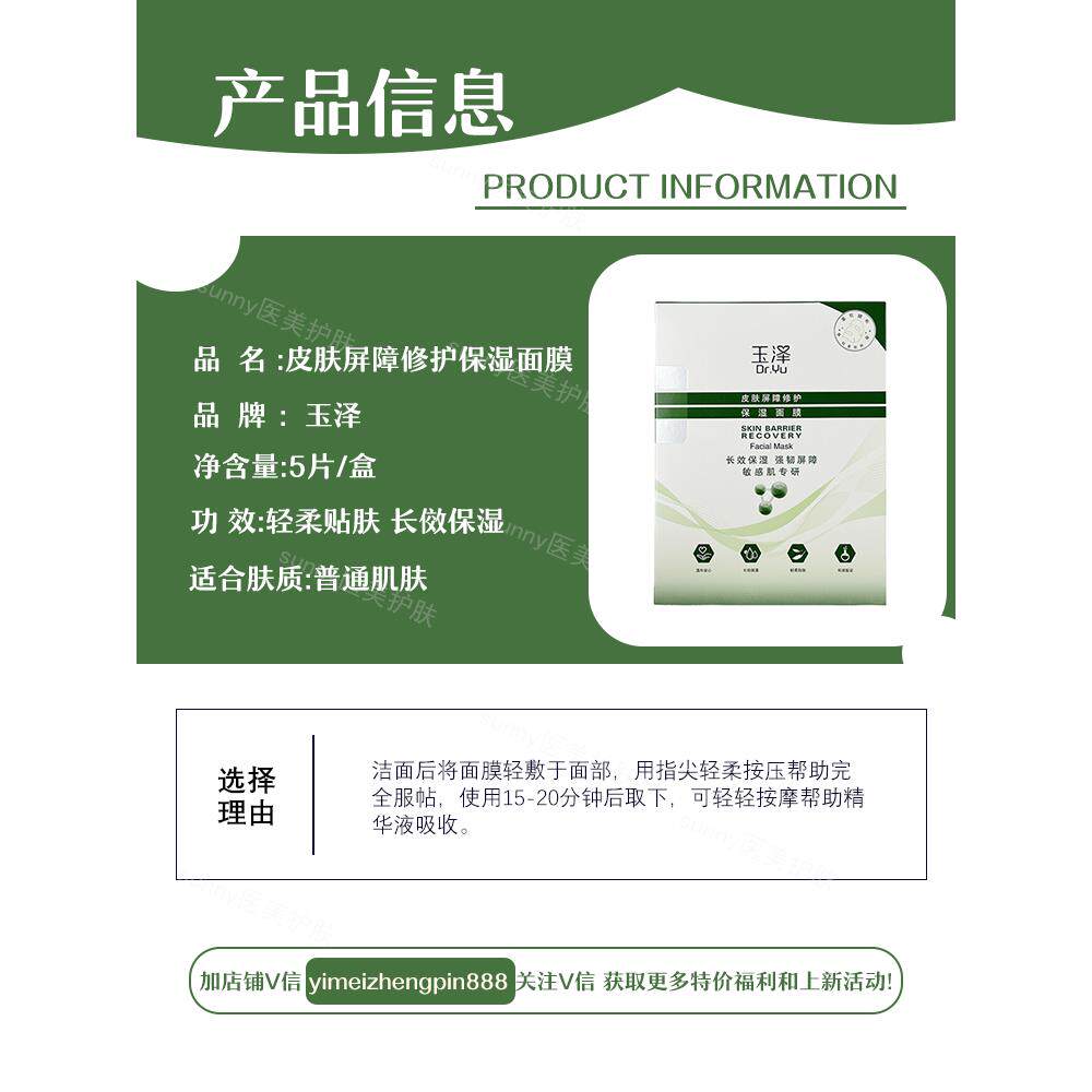 📚 玉泽皮肤屏障修复保湿面膜积雪草冻干面膜补水缓解去红血丝正品女