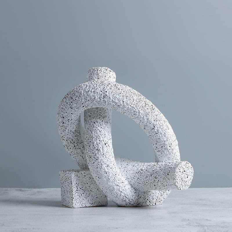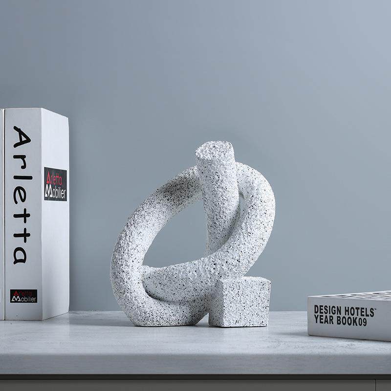 📚 现代北欧轻奢新中式诧寂风树脂石质麻点绳结抽象几何摆件家居饰品
