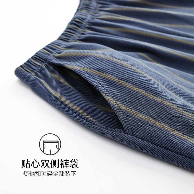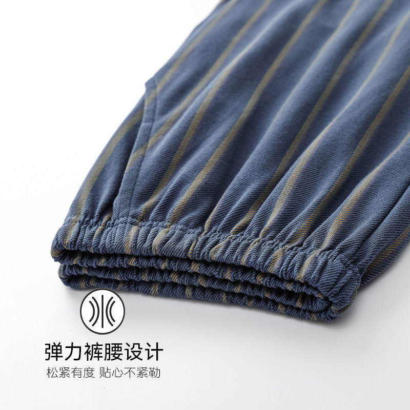 📚 浪莎男士睡裤夏季纯棉长裤居家裤薄款春秋条纹加大码男款宽松全棉