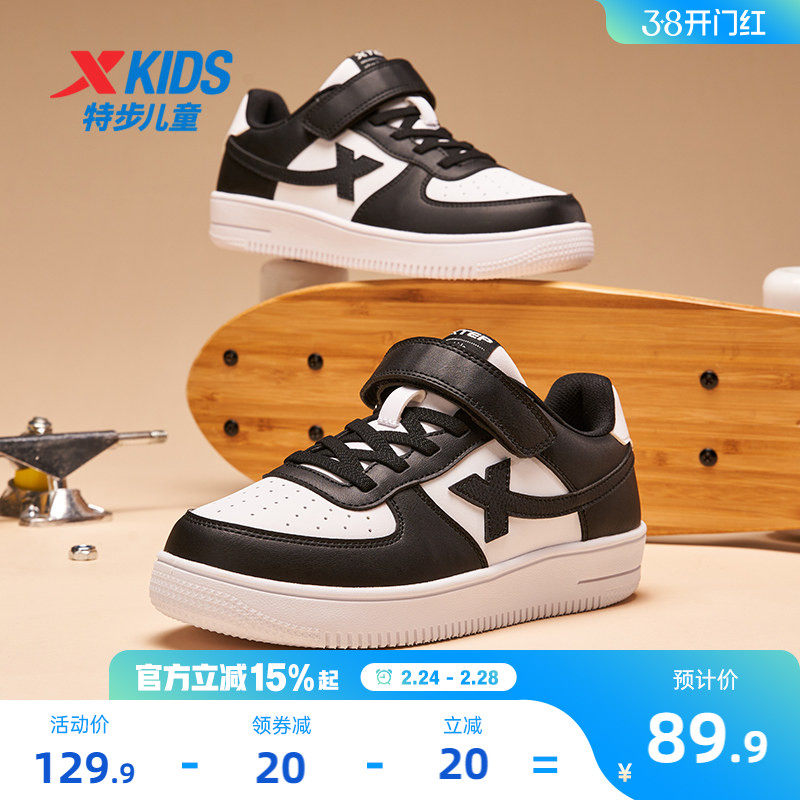 📚 特步童鞋儿童熊猫鞋男童板鞋低帮运动鞋黑白鞋子大童休闲鞋小白鞋