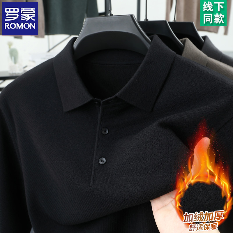 📚 罗蒙含羊毛男士羊毛衫加厚保暖翻领polo衫冬季款中青年毛衣男加绒